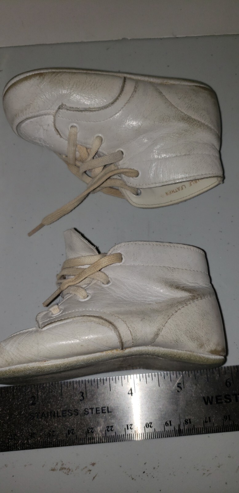 как выглядит Vintage Baby Deer CREEPER Infant White Shoes w/Original Box-Size 2nd Pair фото