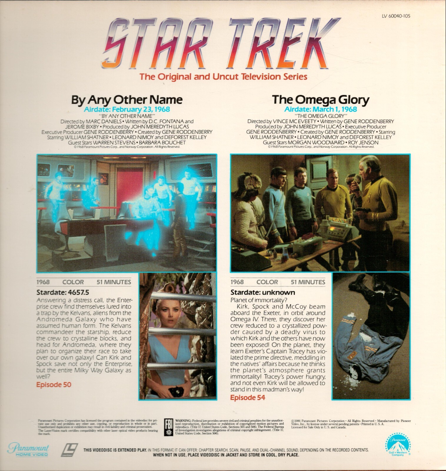 Star Trek 105: By Any Other Name/Omega Glory: Disc 25 Laserdisc