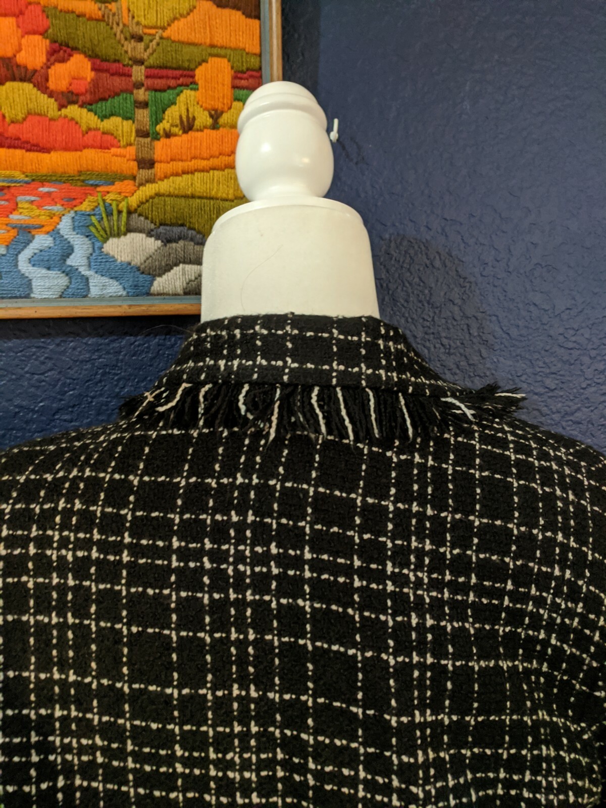 как выглядит VTG Jonathan Logan Womens Jacket Zip Lined Black White Knit Plaid Sz 8 Medium M фото