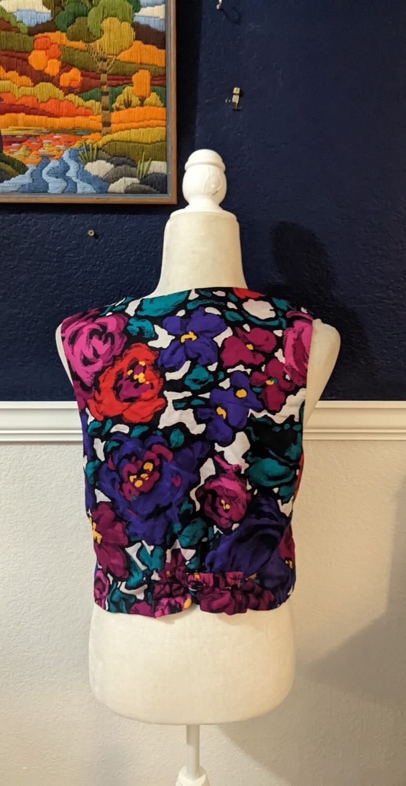 как выглядит VTG Sleeveless V-Neck Button Multi Color Floral Vest Boho Hippie Sz Medium M фото