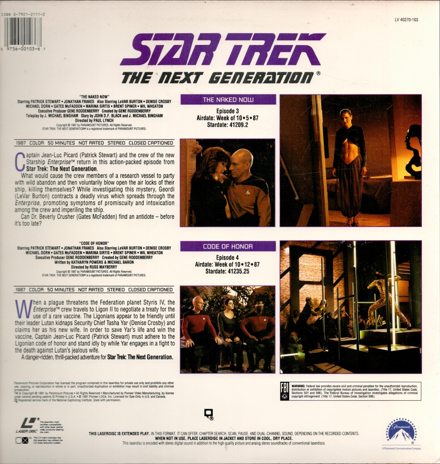 Movie/TV Title: Star Trek: the Next Generation on Laser-Ep. 3 & 4