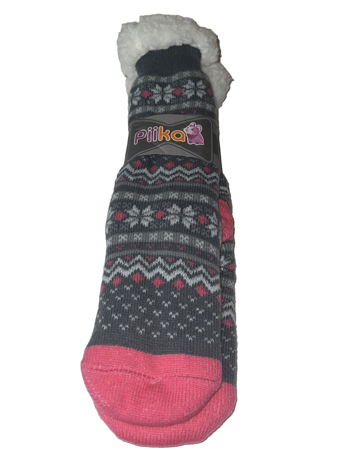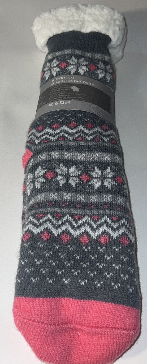 Piika Slipper Socks Gray Pink Brand New. Fuzzy Socks Lined Fleece Winter Socks