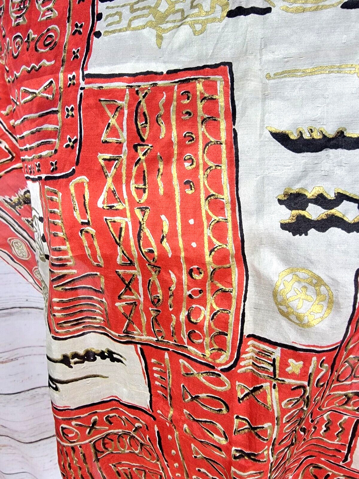 Vintage Silk Hand Rolled Japan Scarf Printed Asian Red Gold Black 30 x 32