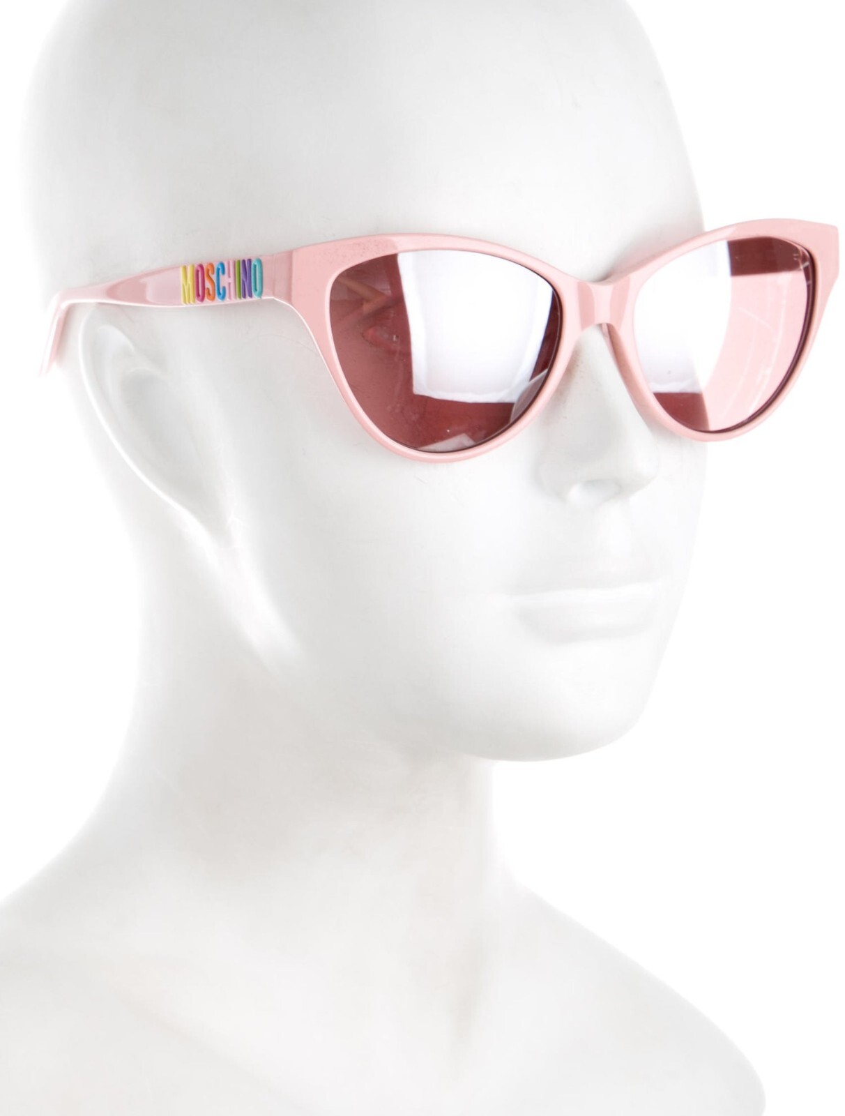 как выглядит MOSCHINO BARBIE PINK LOGO LETTERS ITALIAN CAT EYE OVERSIZE MIRROR SUNGLASSES фото