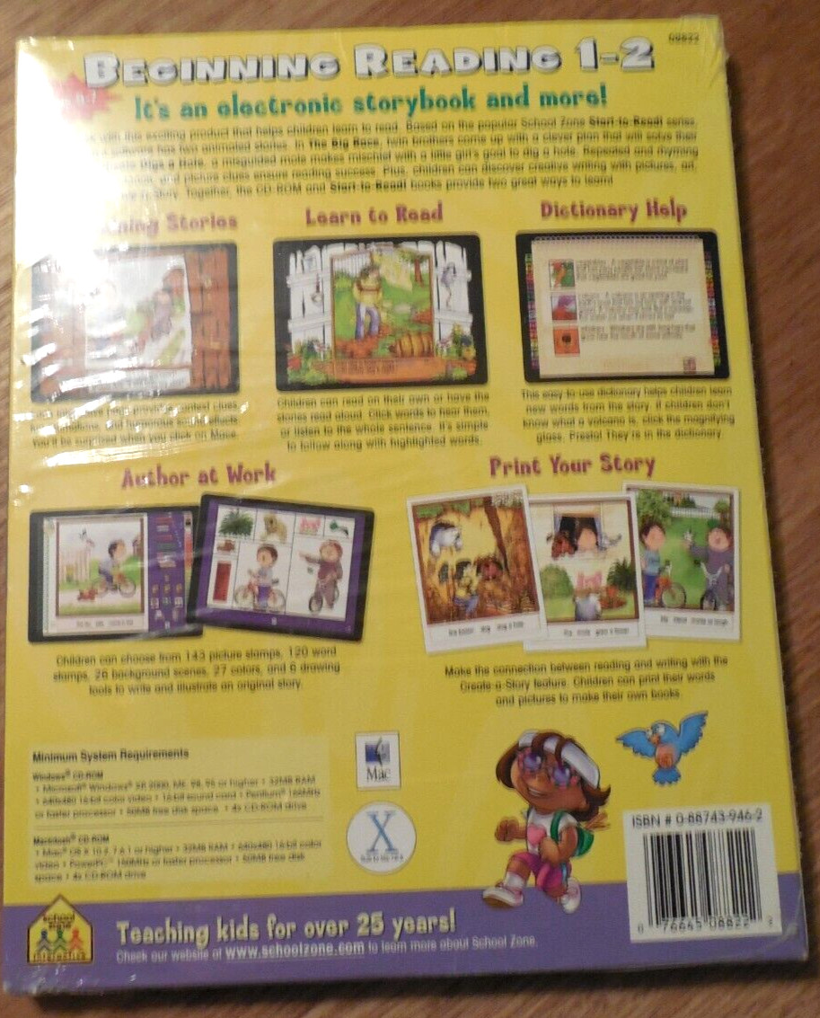• NEW/SEALED School Zone Grades 1-2 "Beginning Reading" CD-ROM Two Books Age 5-7