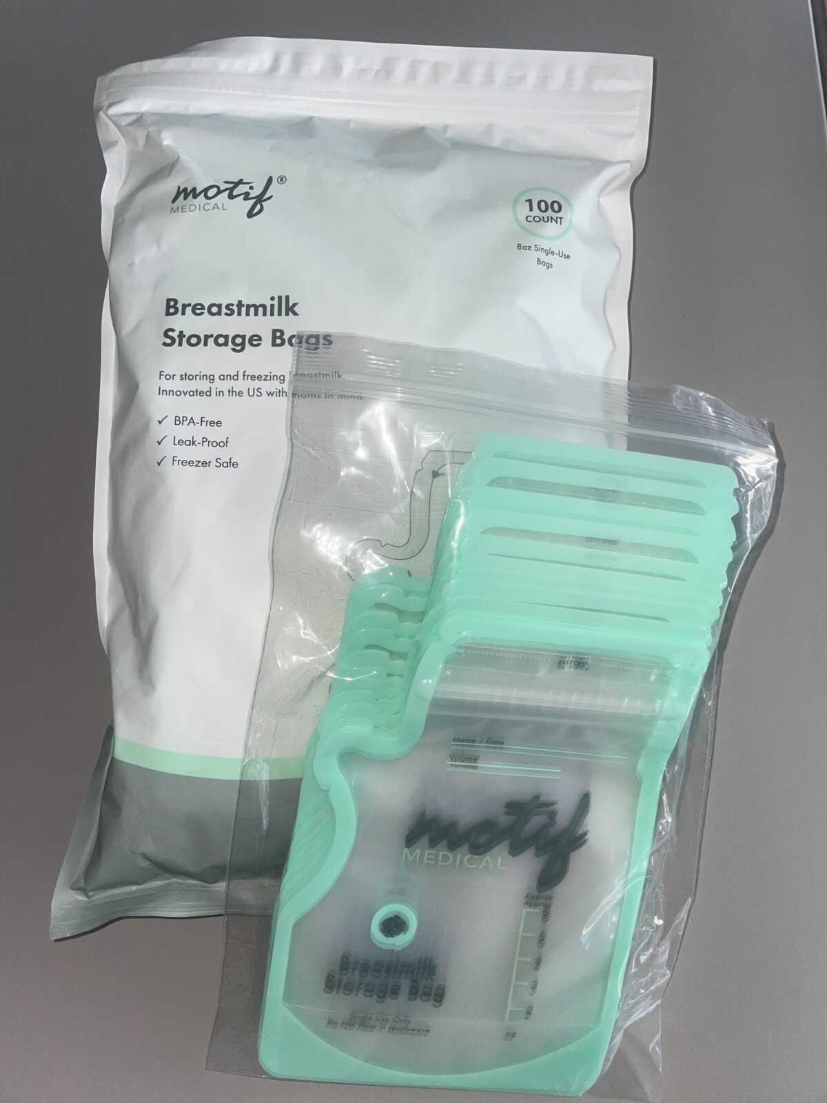 Motif Breastmilk Storage Bags 100 Ct 8oz BPA Free - Leak Proof - Easy Pour Spout