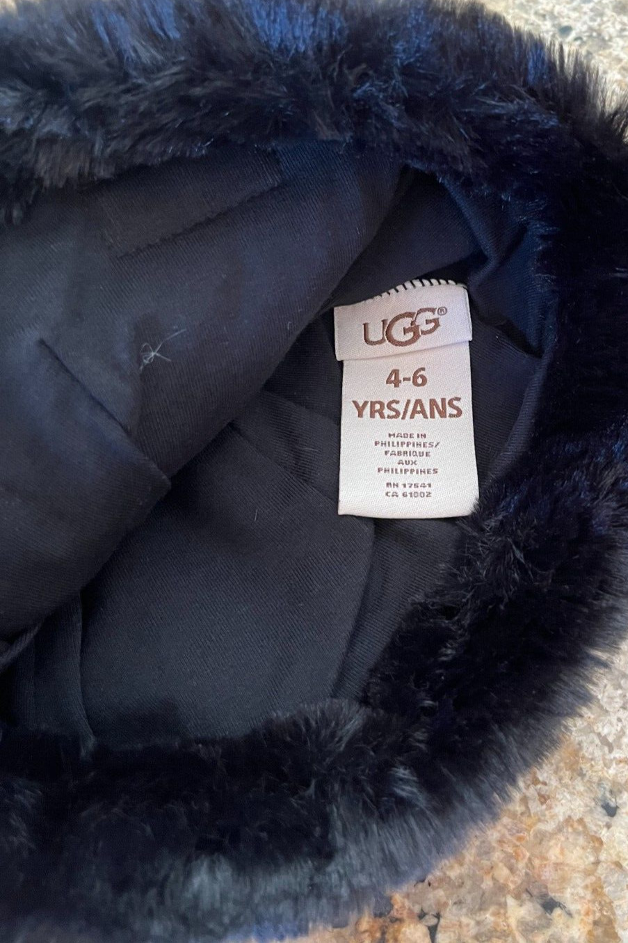 NWT UGG KIDS FAUX FUR BEANIE WITH POM POM BLACK