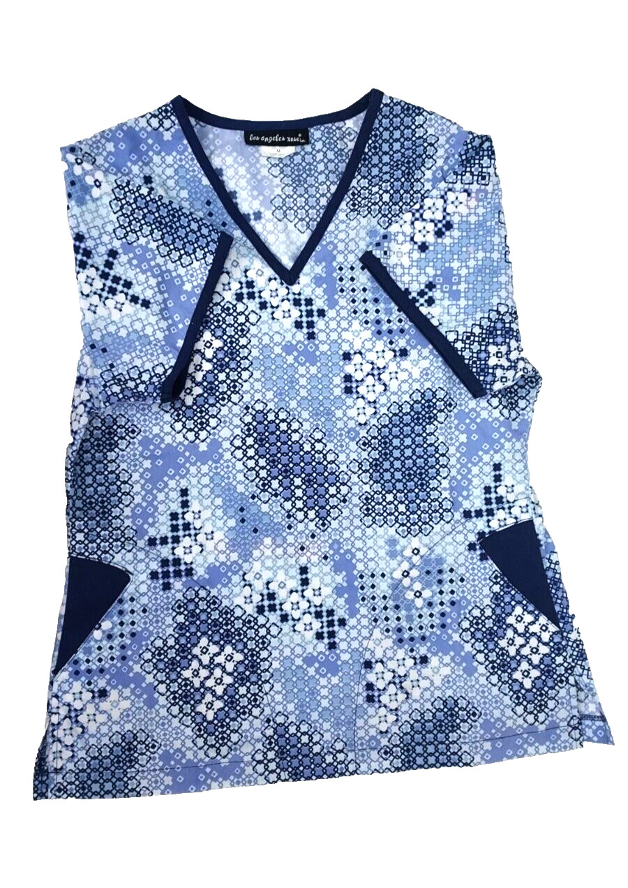 los angeles rose inc Scrub Womans Sz M Light Dark Blue White Short Sleeve