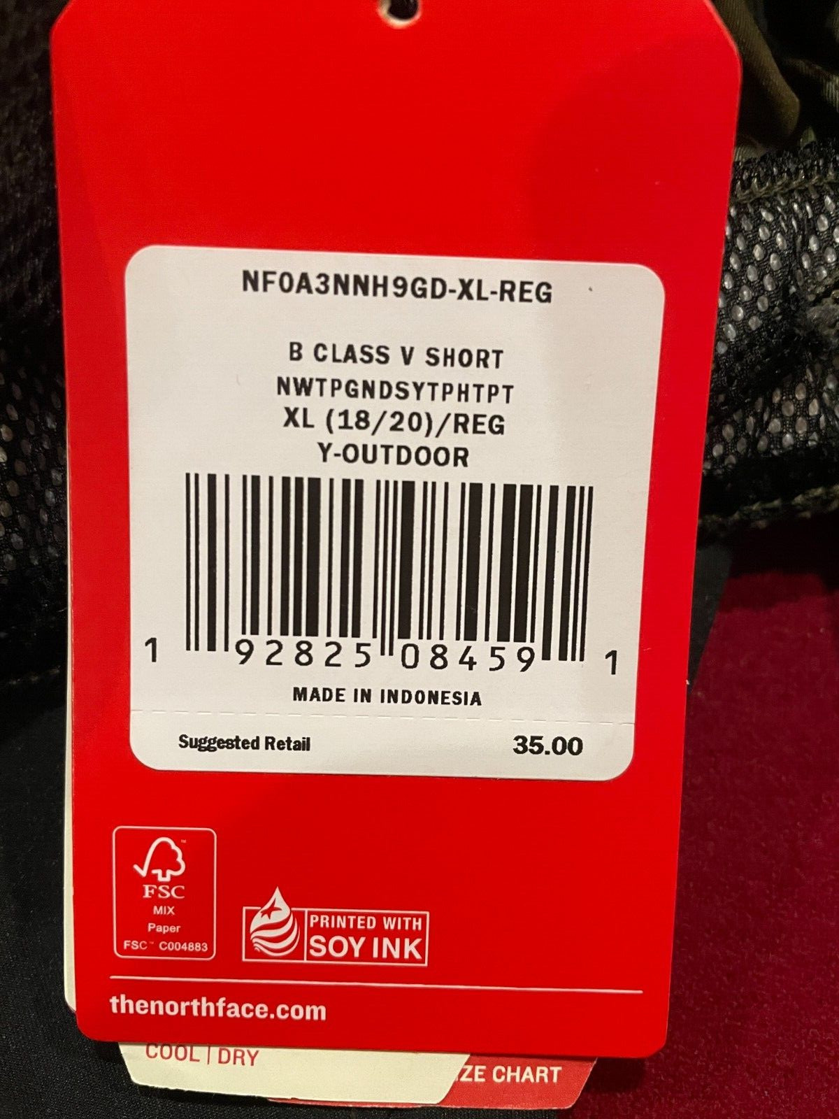 как выглядит TNF The North Face Boys Class V Short Outdoor Flash Dry Olive Black XL 18/20 NEW фото