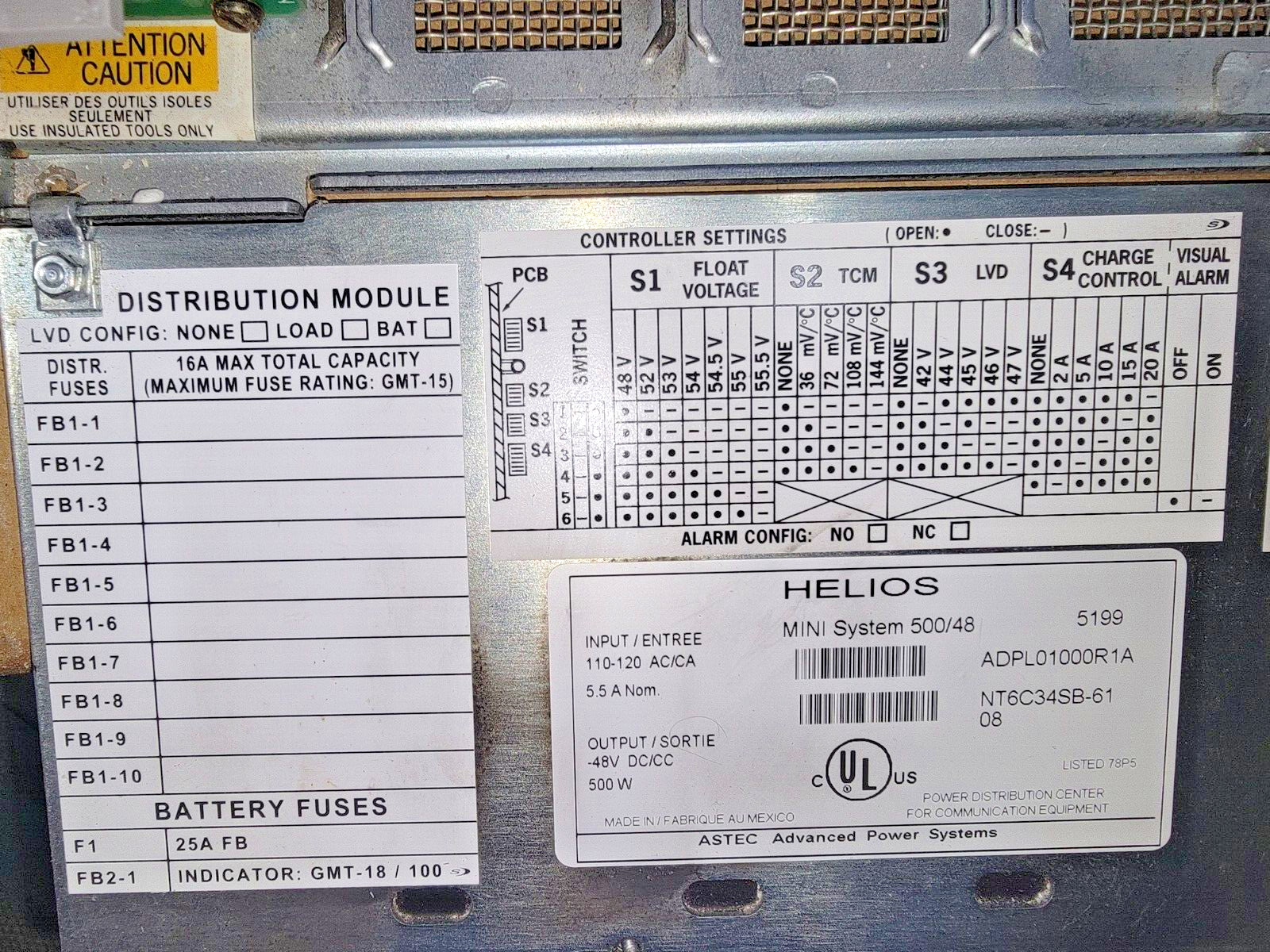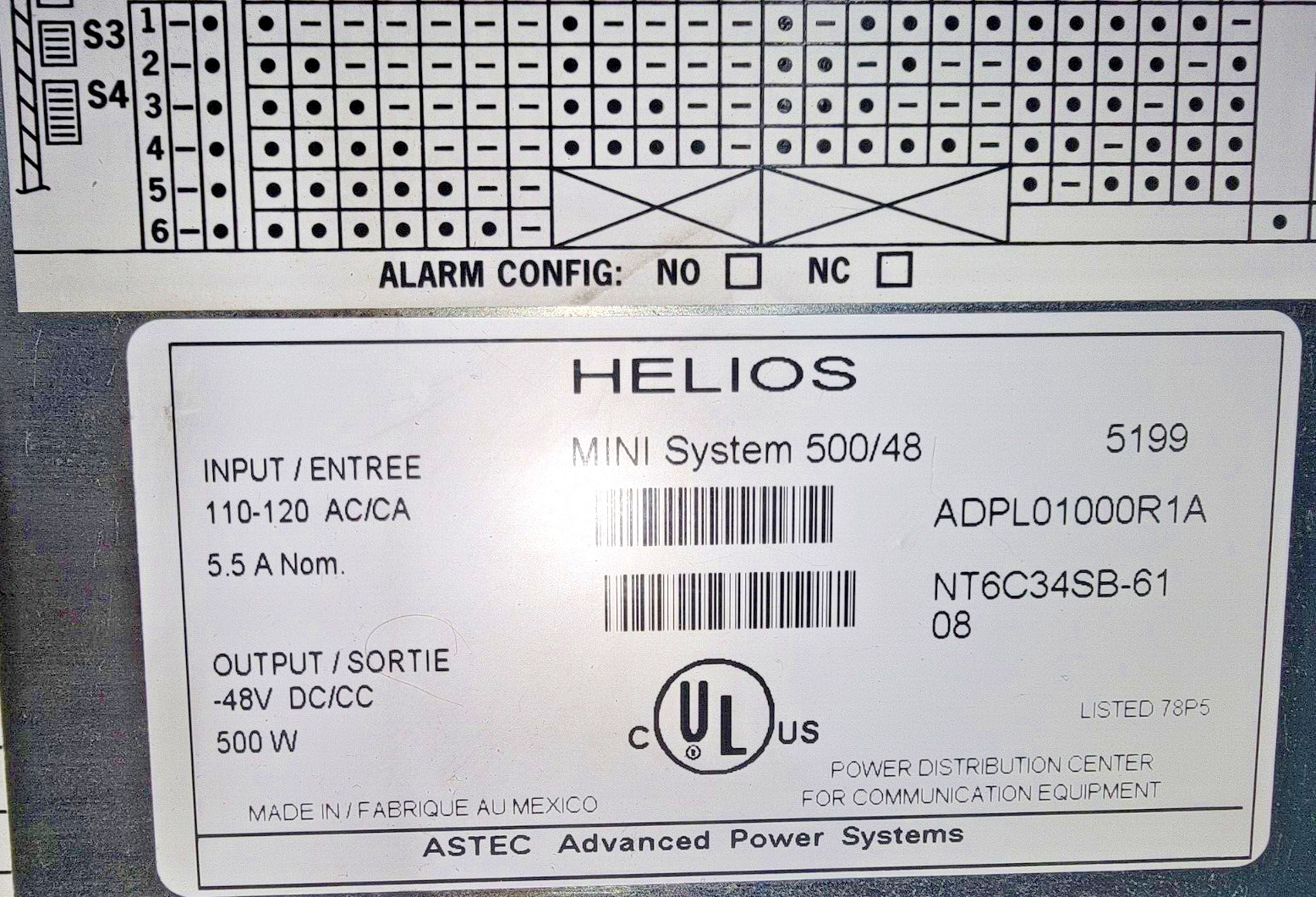 ASTEC, HELIOS, NT6C34SB-61, PBM1T10ARA HELIOS MINI SYSTEM 500/48, NT5C22AA, USED