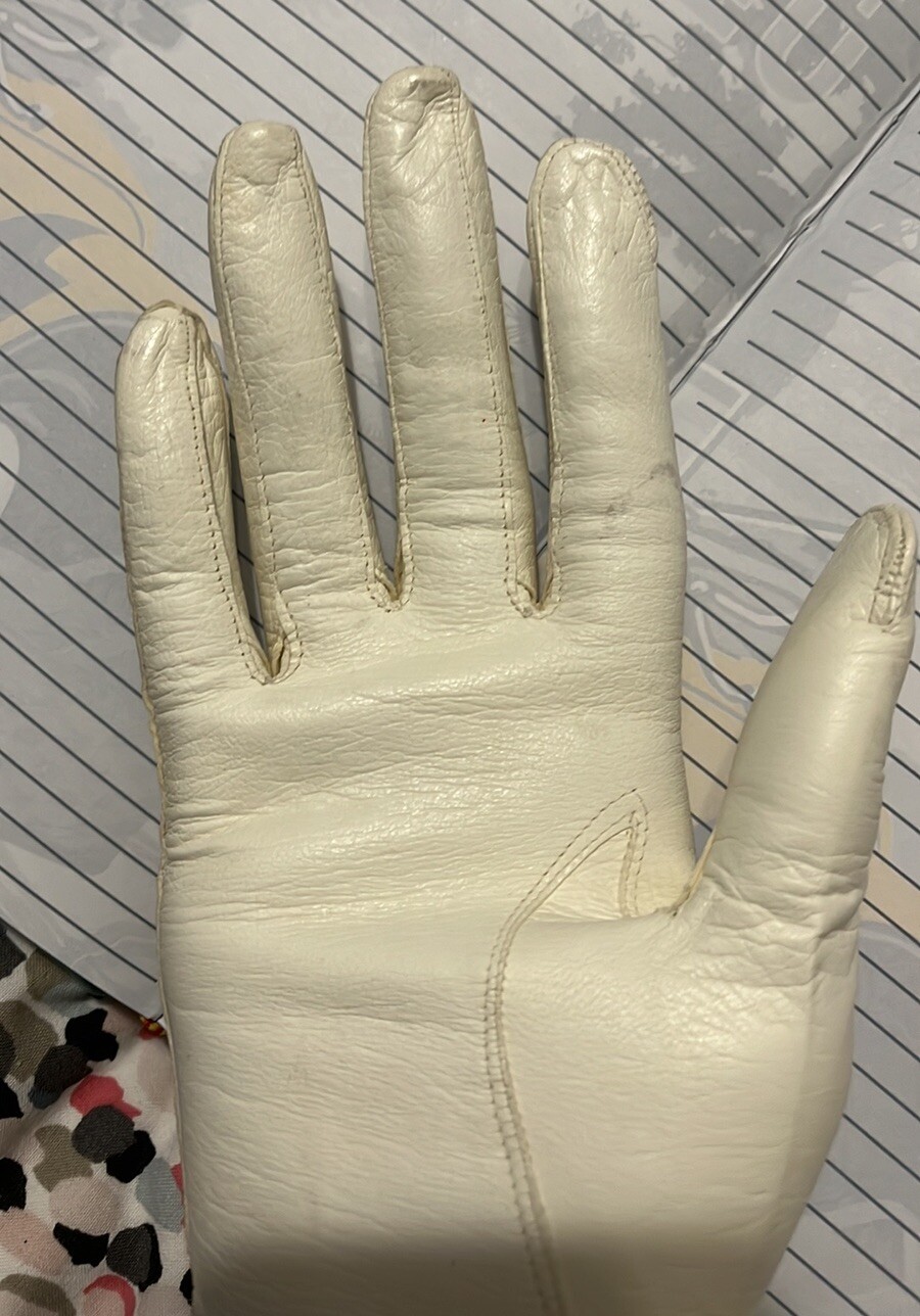 как выглядит Vintage Ivory Leather Evening Gloves with Embellished Stitching фото