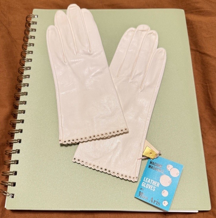 Miss Aris Vintage Ivory Leather Eyelet Short Gloves