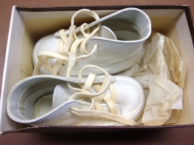 Vintage 1960s BABY BEAVER White Leather Baby Shoes Size 2 Orig. Box UNWORN