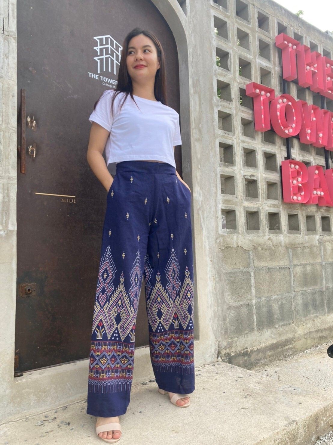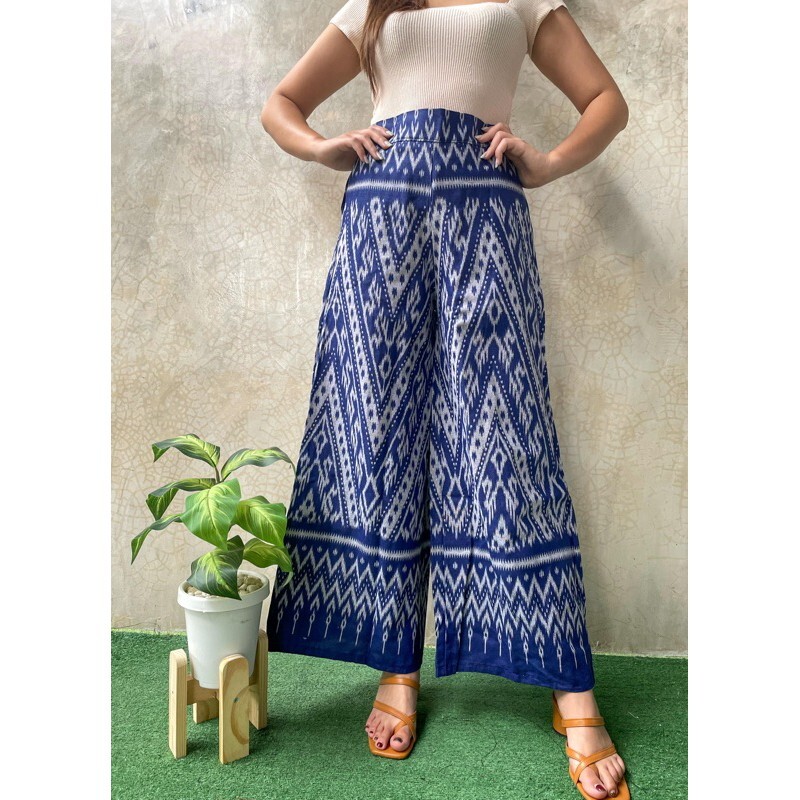 как выглядит Thai printed trousers,wide leg, 2 side pockets,comfortable to wear white color фото