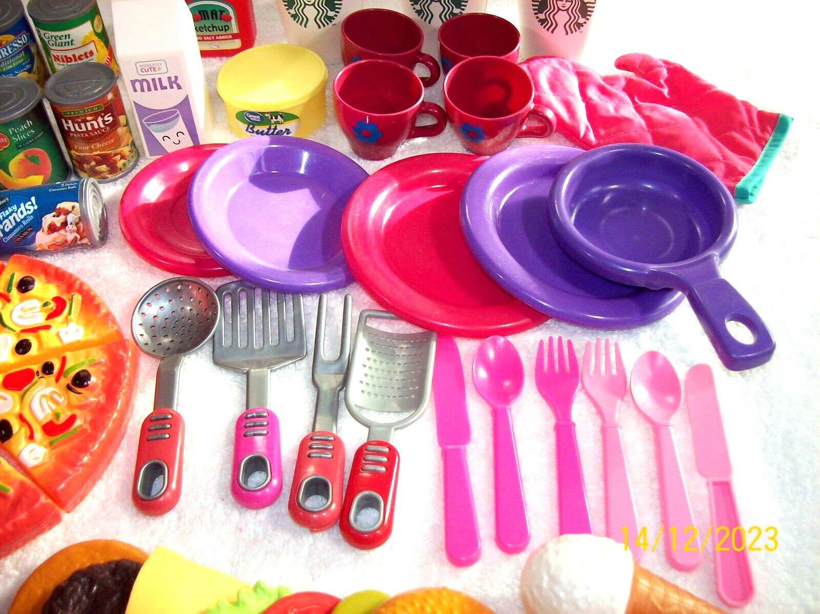 82 PC PLAY FOOD - LITTLE TIKES STEP 2 KITCHEN CANS STARBUCKS PIZZA HAMBURGER