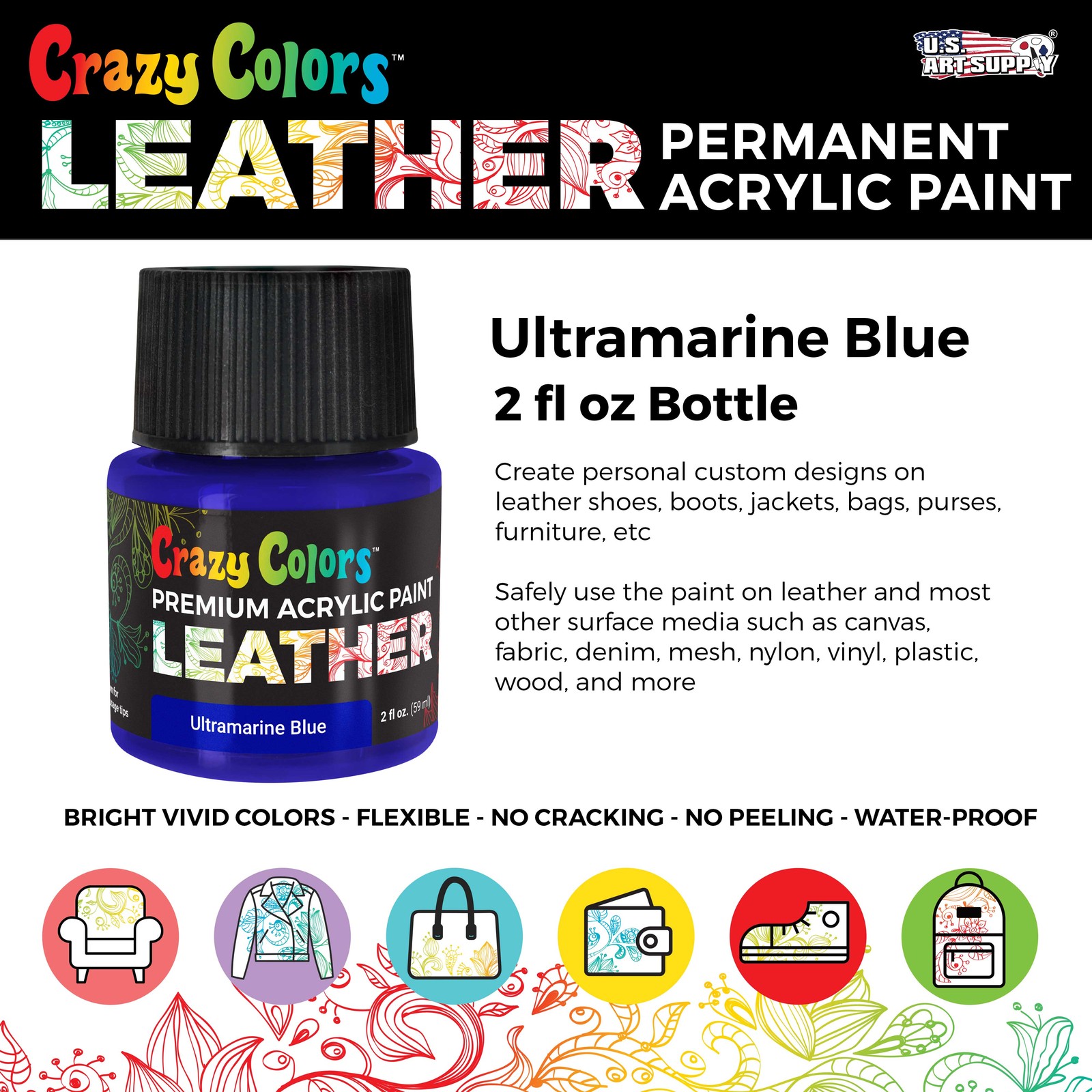 Ultra Marine Blue Acrylic Leather Shoe Paint, 2 oz - Sneakers, Jackets, Bags