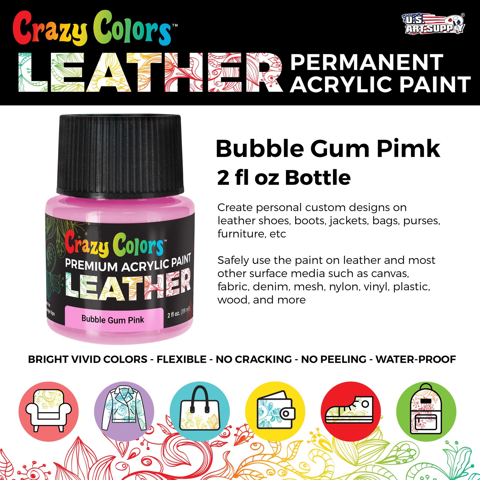 Bubble Gum Pink Acrylic Leather Shoe Paint, 2 oz - Sneakers, Jackets, Bags
