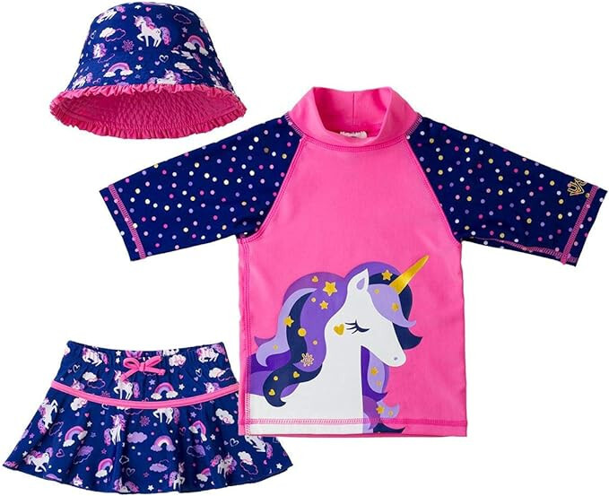 как выглядит UV SKINZ UPF 50 Girls 3-Piece Swim Set 2T, Bubblegum Unicorn . фото