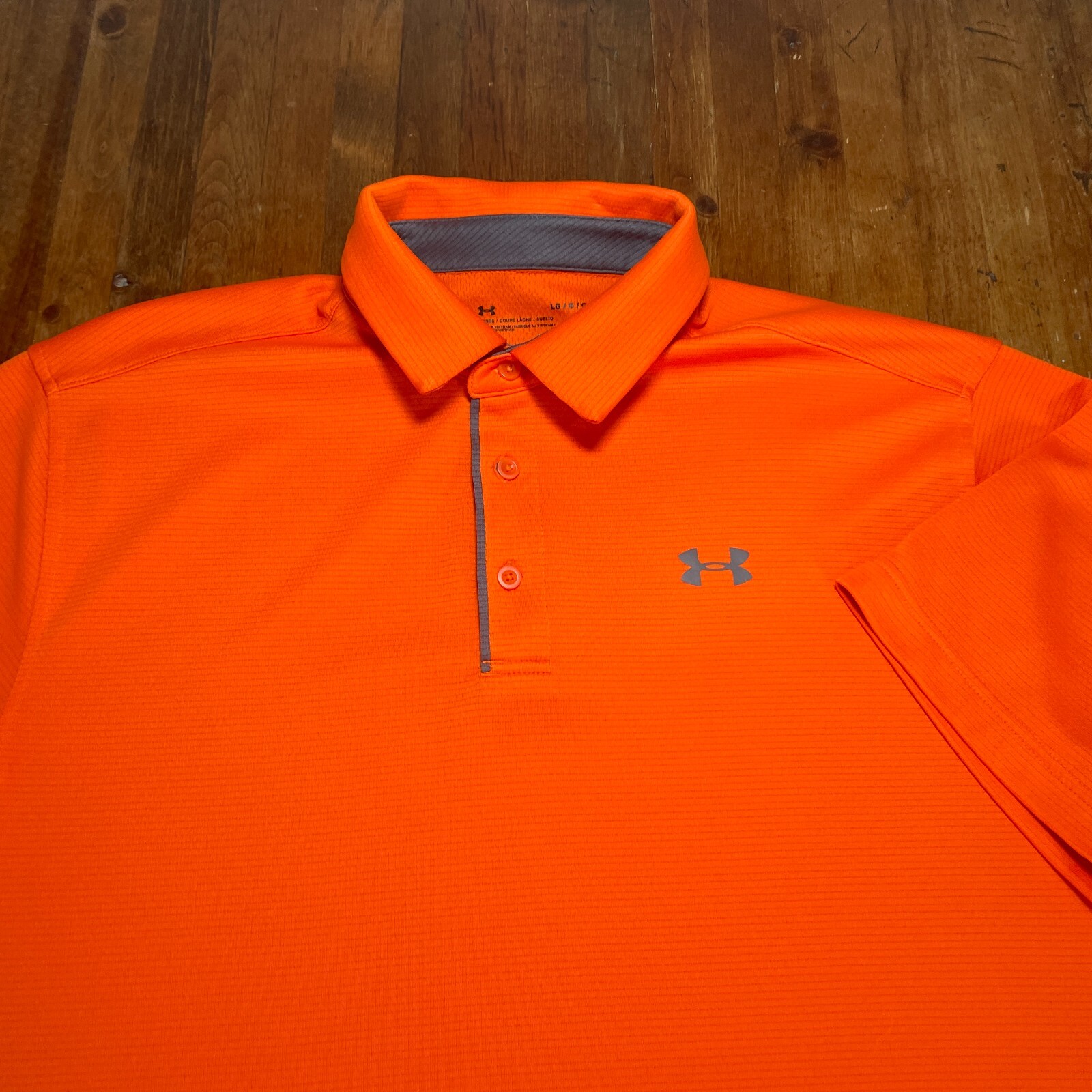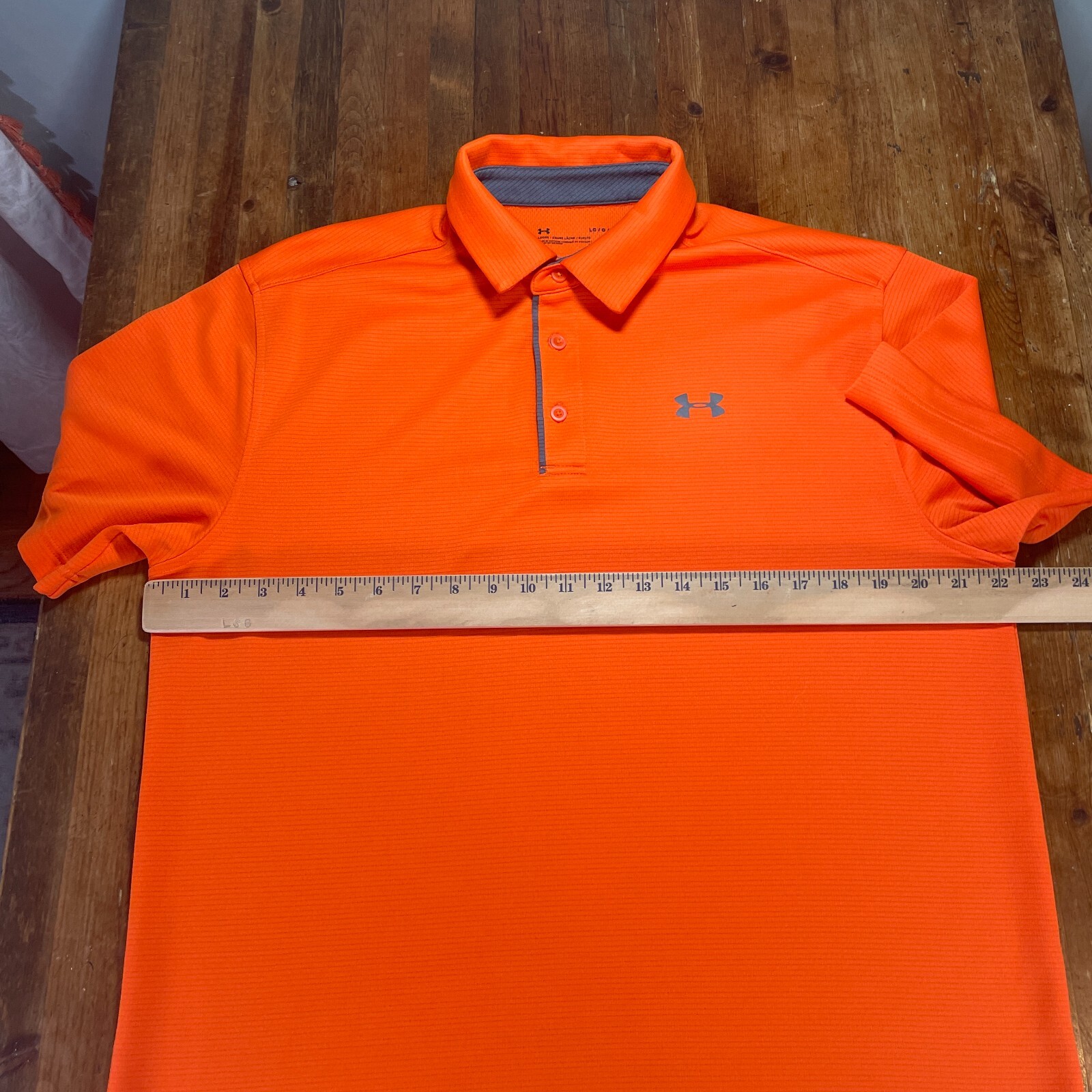 Under Armour Polo Shirt Mens Large Orange HeatGear Casual Golf Hunting