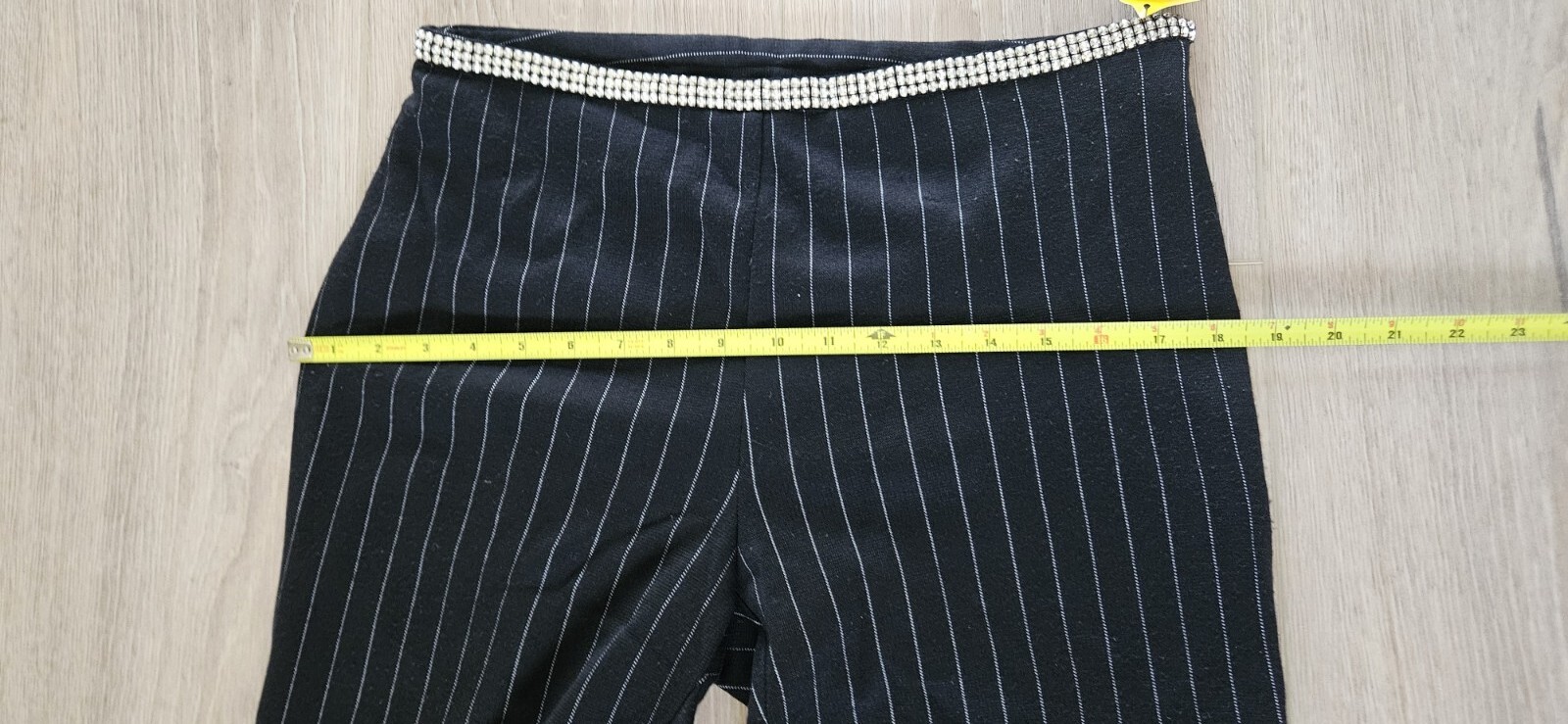 как выглядит Victoria Secret Vintage Moda International Blk Pinstripe Slacks Rhinestones фото