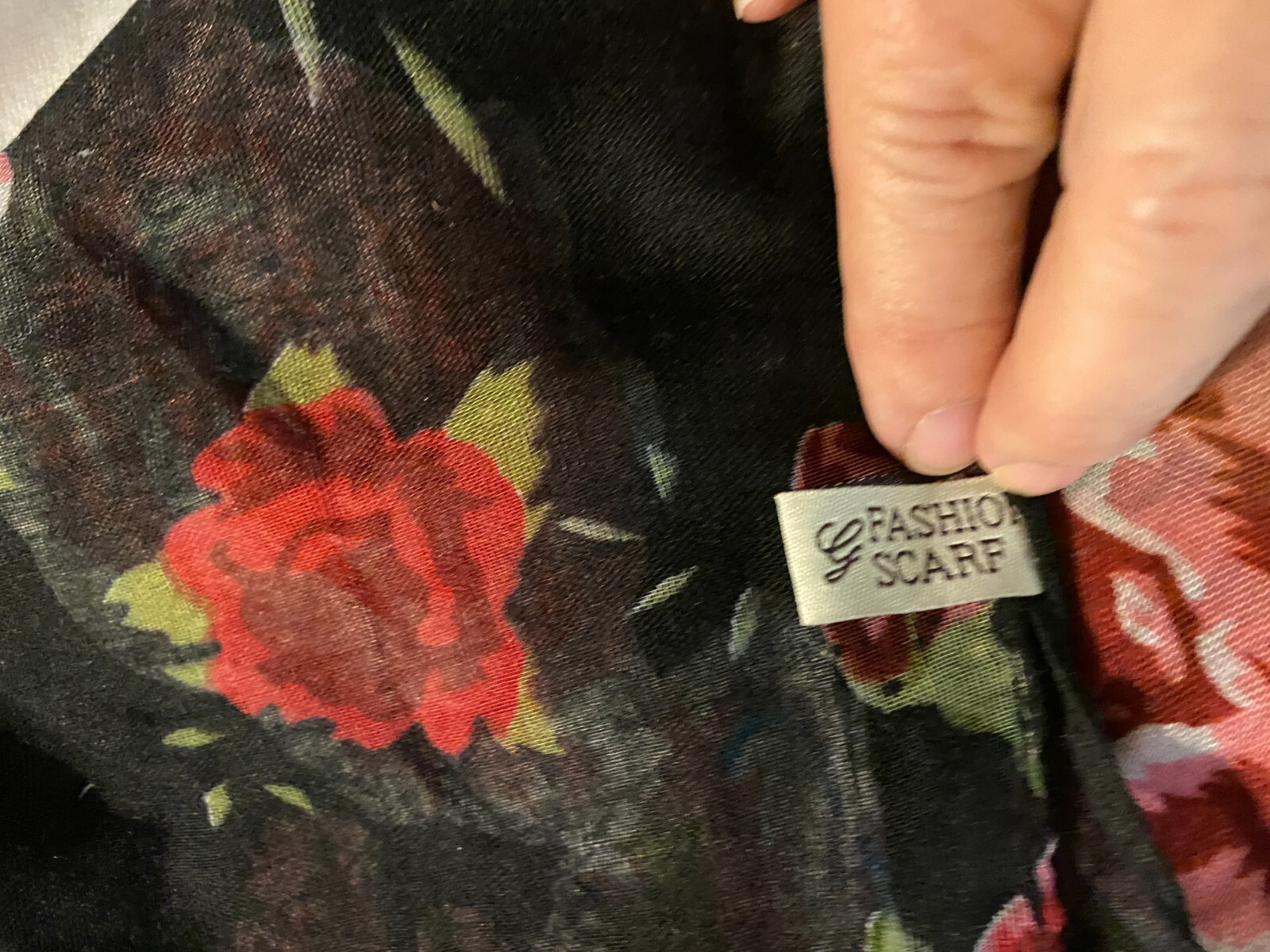 как выглядит 3 Vintage Scarves , Green gray, white with roses, black with roses, фото