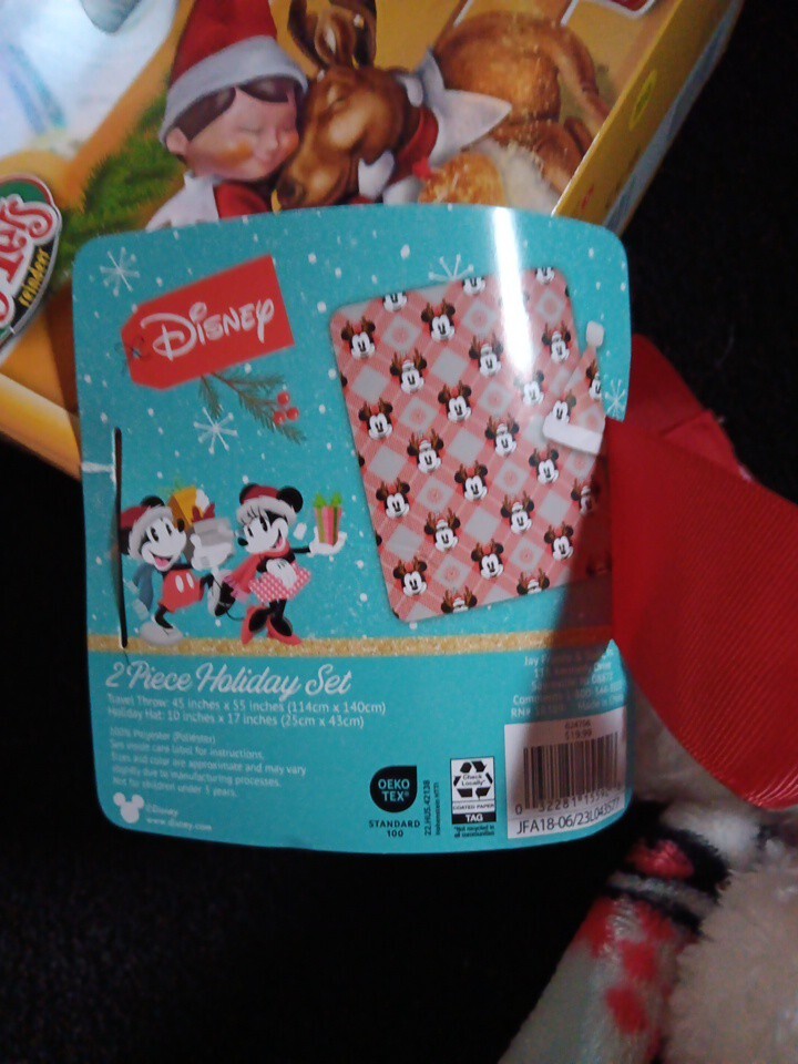 как выглядит DISNEY 2 PIECE HOLIDAY SET TRAVEL BLANKET HOLIDAY HAT - NEW фото
