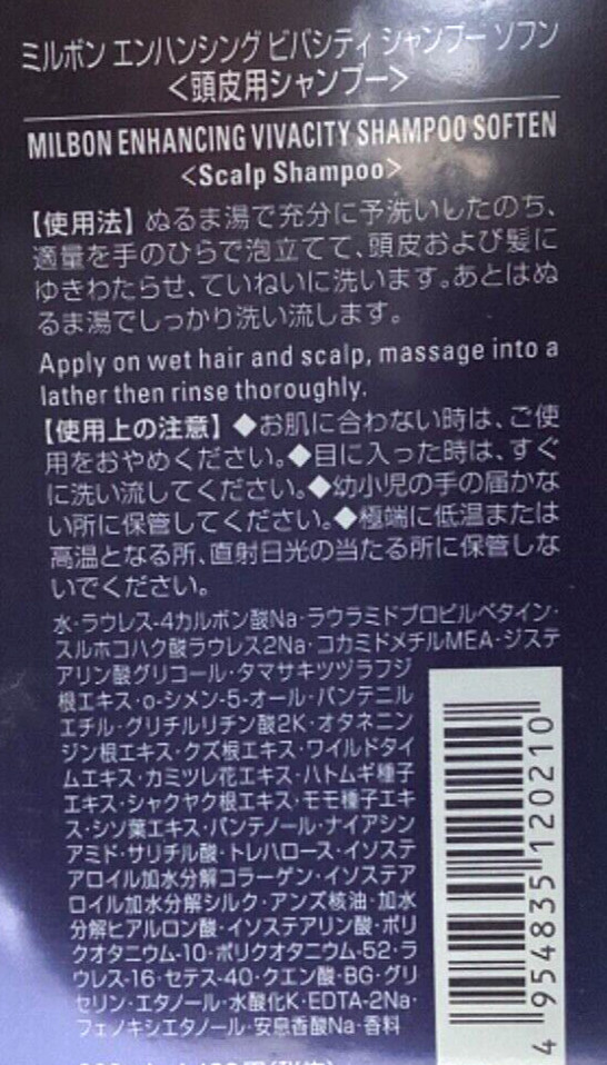 MILBON ENHANCING VIVACITY TREATMENT shampoo soften200g/ml Made in Japan Salon