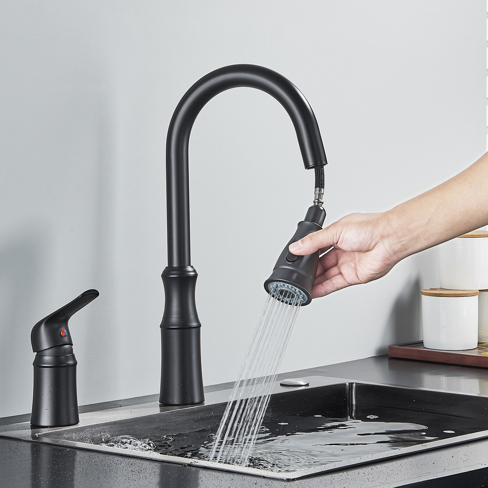 Brass Kitchen Sink Faucet Swivel Pull Down Sprayer Single Handle High Arc