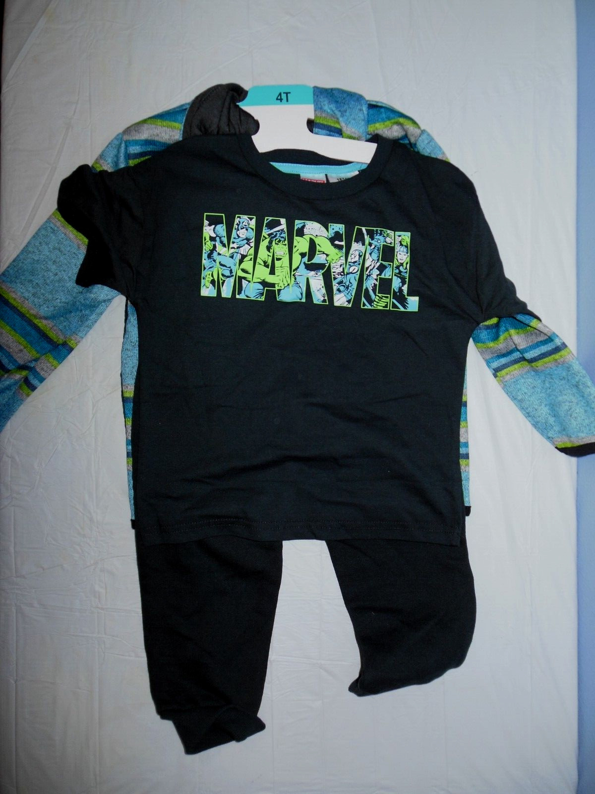 Boy's Marvel Comics 3-Piece Full Zip Hoodie, Tee, Fleece Jogger Size 4T NWT