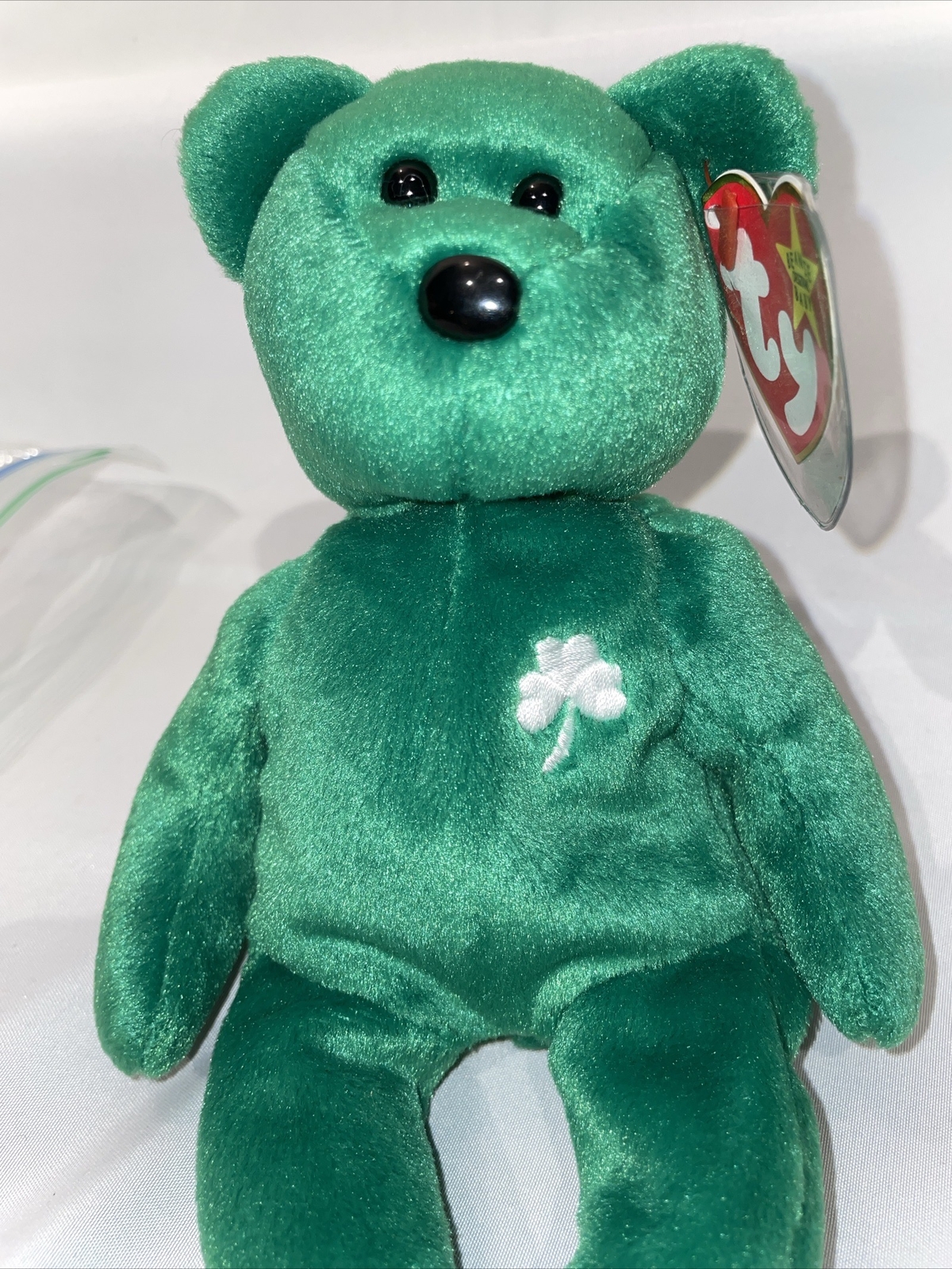 Ty Beanie Baby Erin The Bear 1997 Retired Plush Toy W/Tag errors MINT