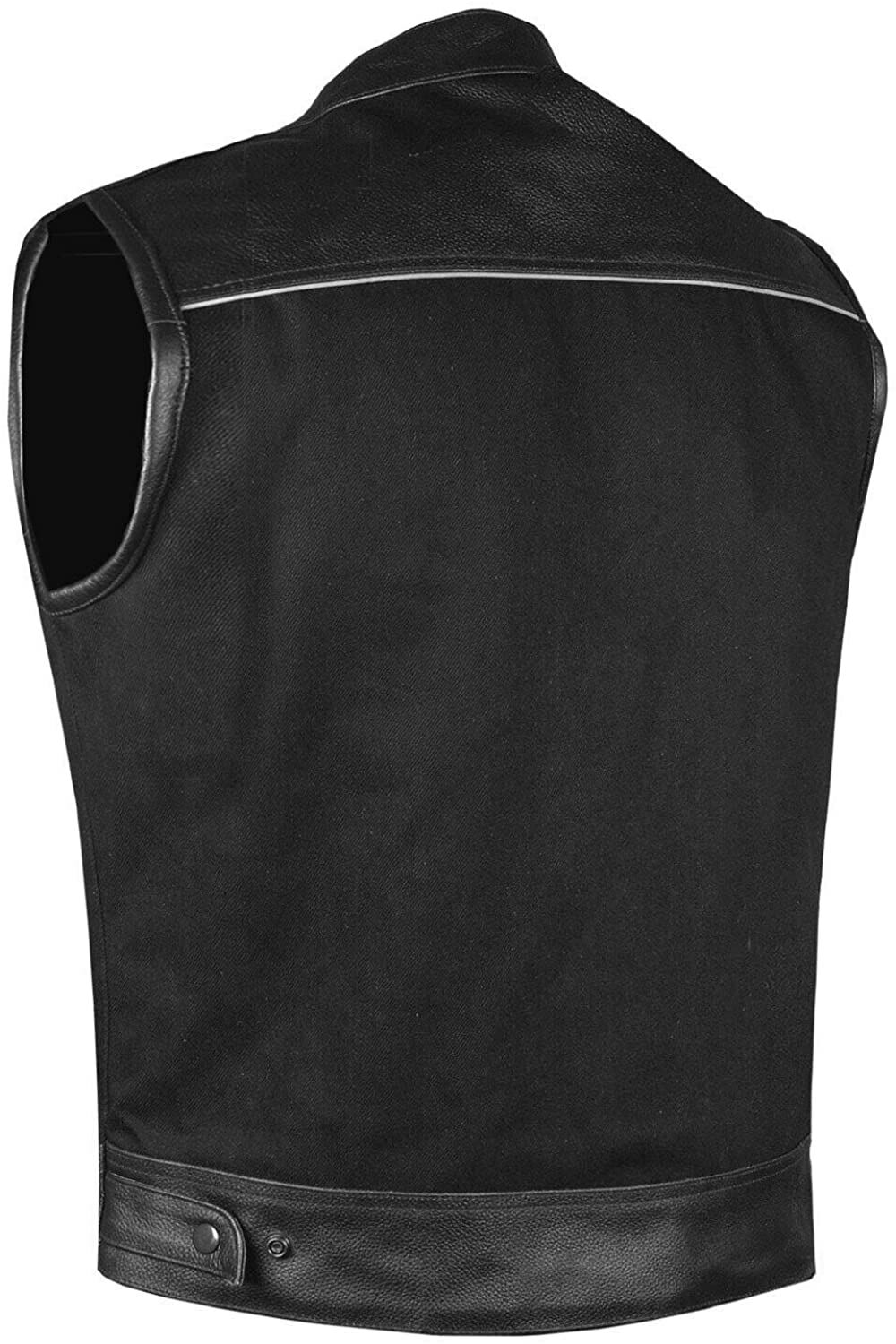 Men's Motorcycle SOA Club Leather and Denim Vest Bikers Solid Black Carry Arms