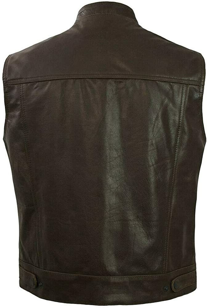 Men's Motorcycle SOA Club Leather Vest Bikers Solid Brown Concealed Carry Arms