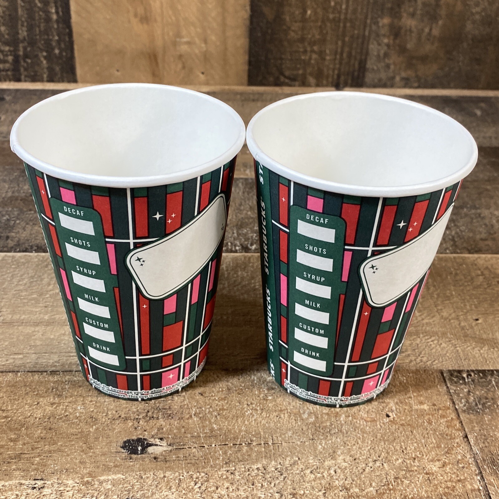 как выглядит Lot 8 Starbucks Paper Cups 2023 Holiday Christmas Disposable Red Green 12 oz NEW фото