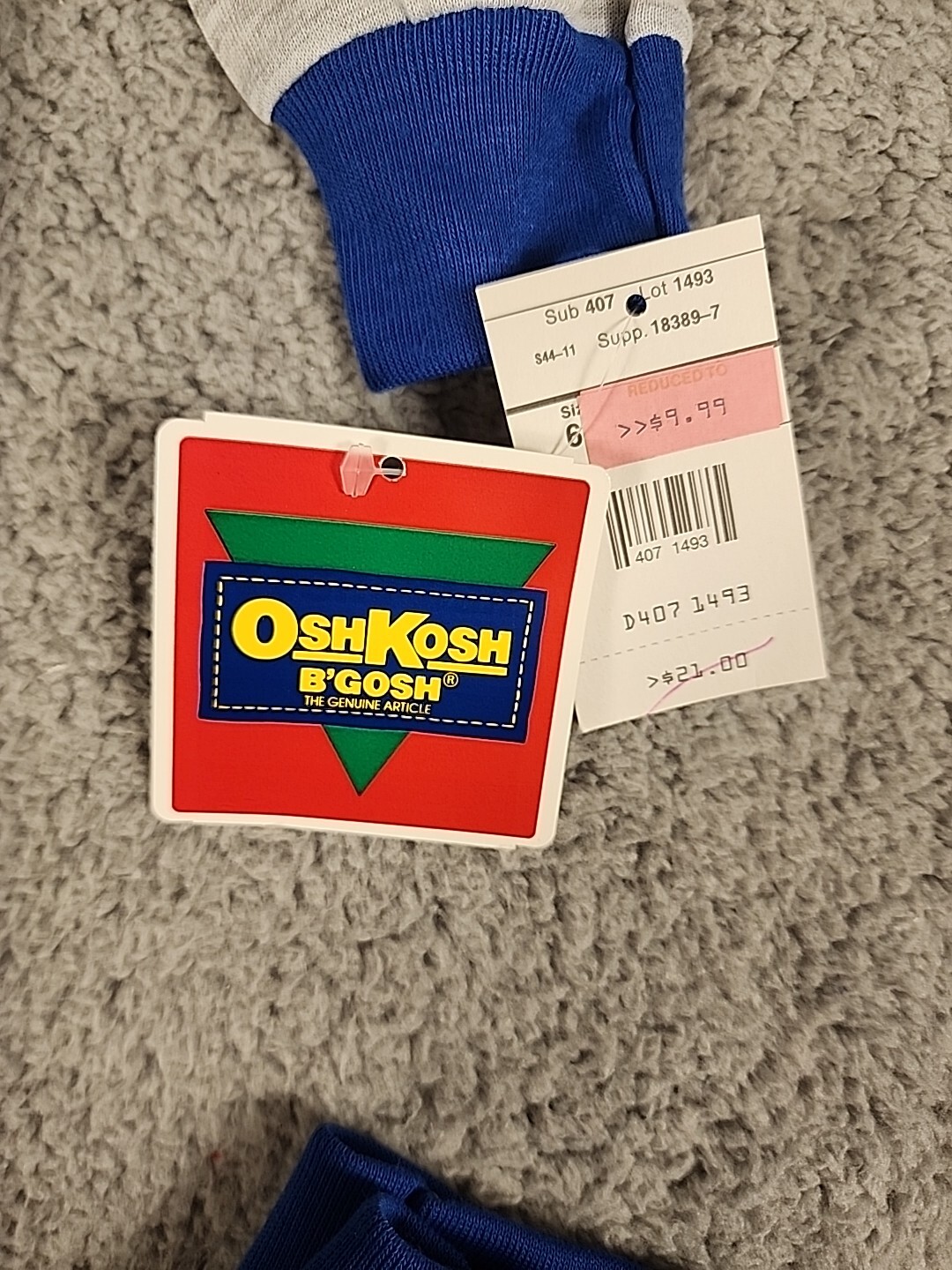 Vintage OshKosh B Gosh Logo Pajamas Gray 2 Piece Long Sleeve Pants New 90s