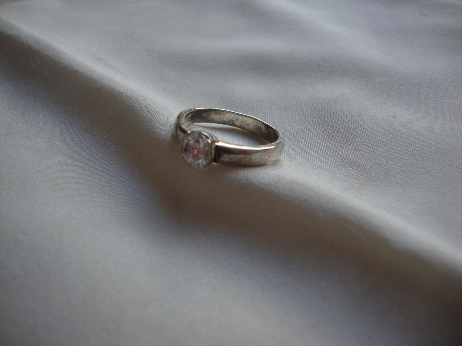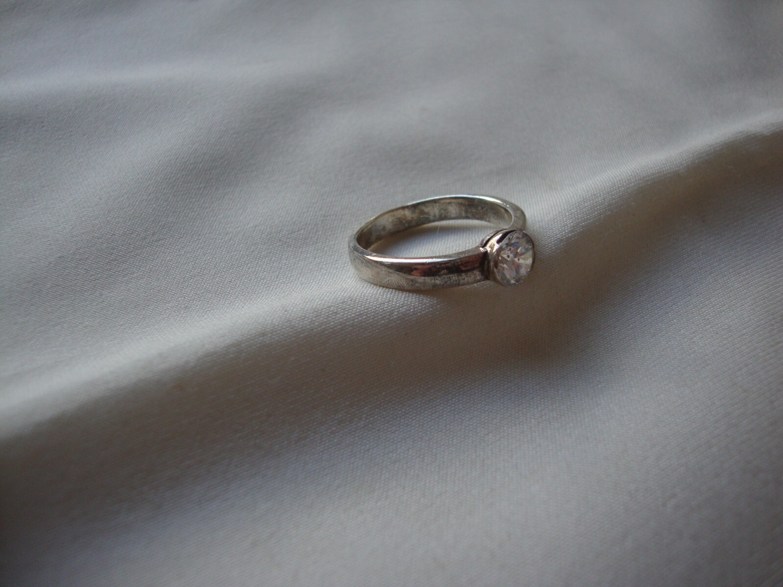 как выглядит VINTAGE 1980s SOLITAIRE ROUND CZ STERLING SILVER STAMP 925 RING SZ 8 фото