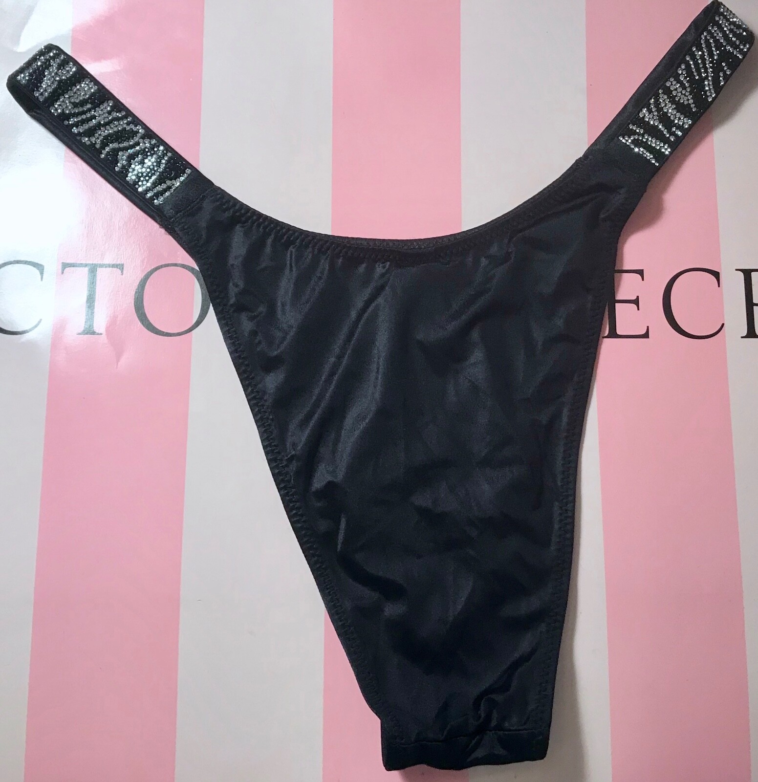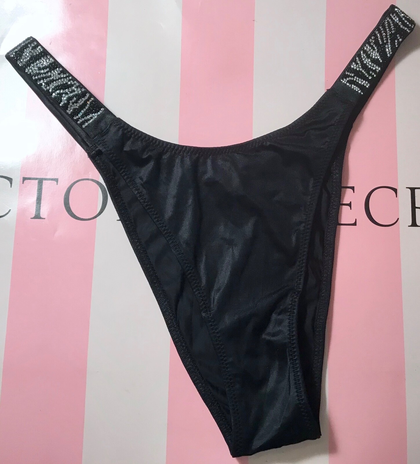 как выглядит VICTORIAS SECRET SMOOTH BLACK ZEBRA RHINESTONE SHINE STRAP BRAZILIAN PANTIES фото