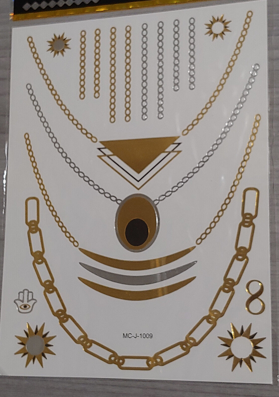 4PC. Gold Silver Foil Temporary Tattoos Flash Butterfly, Hearts Body Face Tats