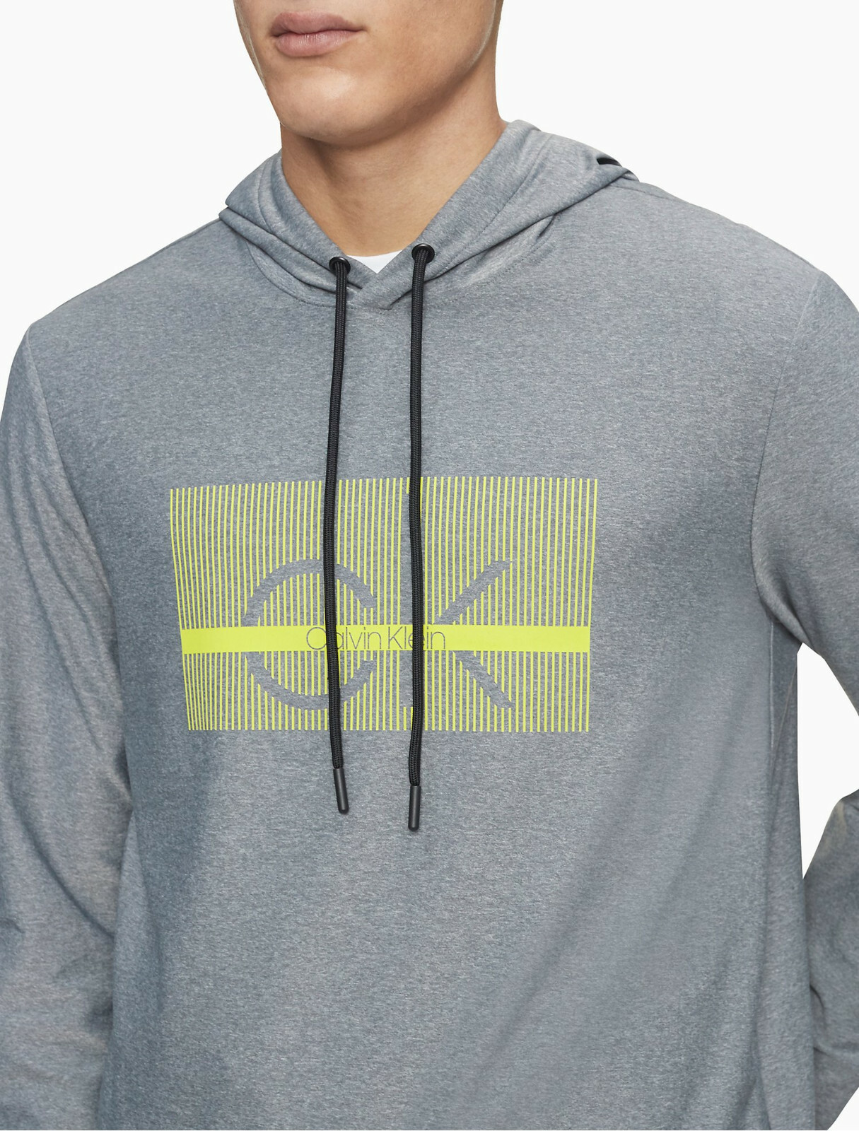 Calvin Klein Linear Logo Drawstring Hoodie, Gray XS