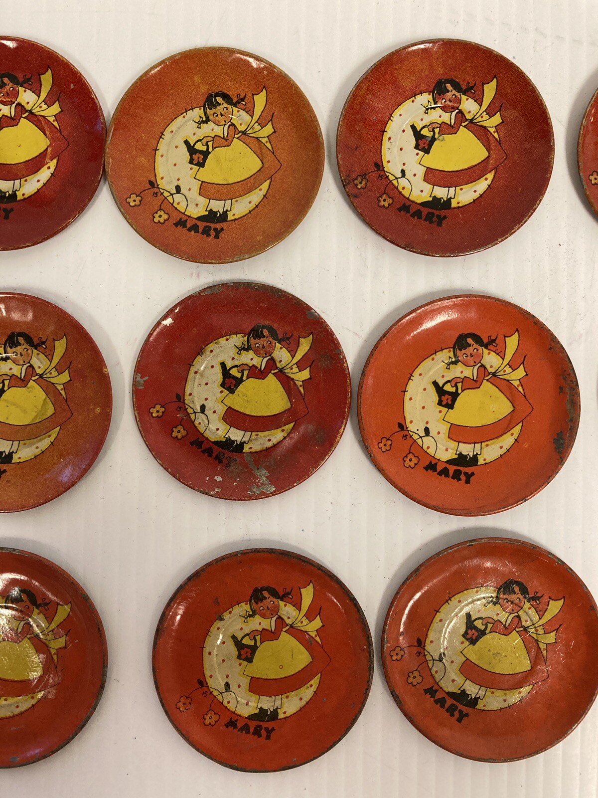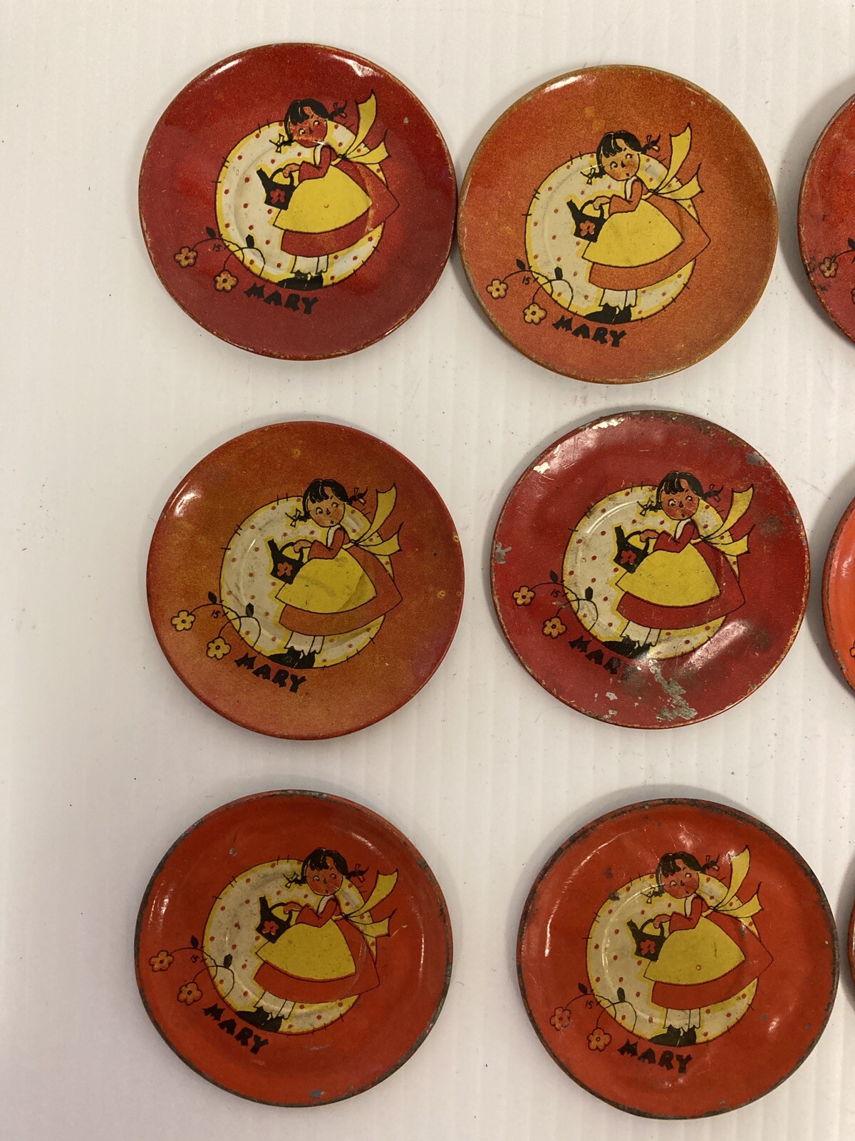 Vintage Children s Tin Play Plates with Mary Pictures D3-93