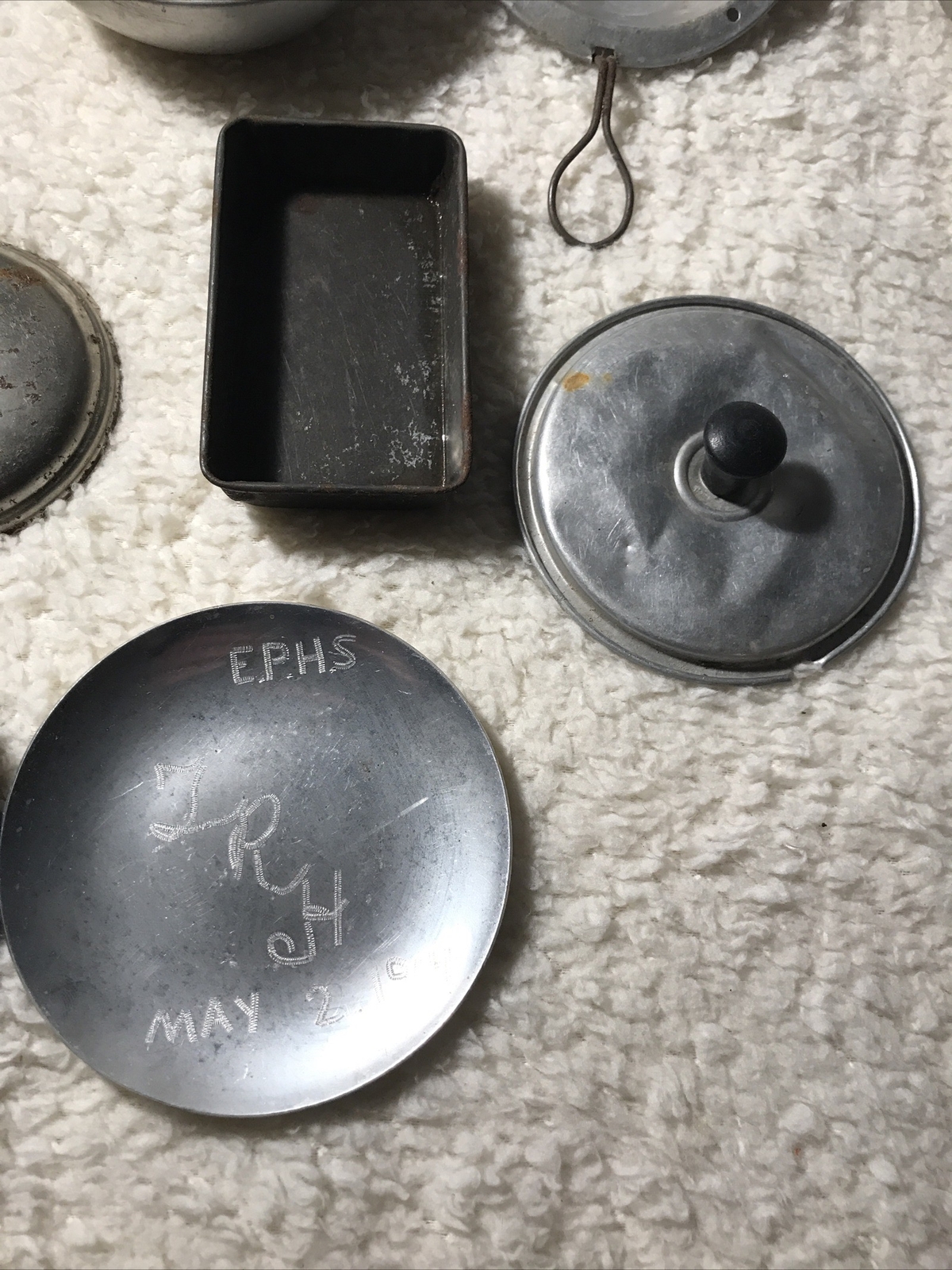 как выглядит VINTAGE ALUMINUM CHILDS KITCHEN TOYS Lot фото