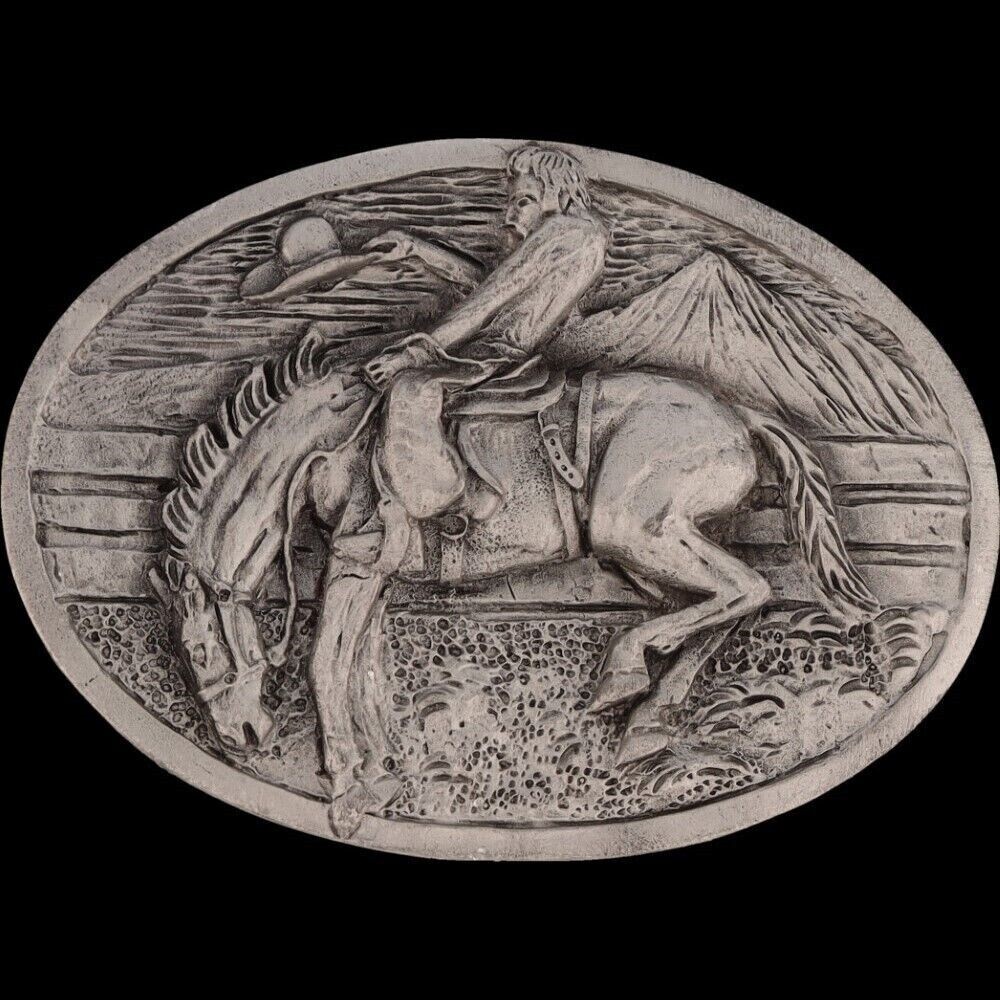 Bucking Bronc Bronco Rider Horse Rodeo Cowboy Western 1980s Vintage Belt Buckle