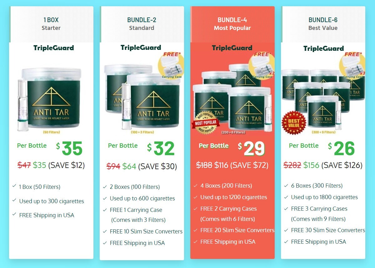 • ANTI TAR TripleGuard Disposable Cigarette Filter Tips Tar Trap 50 Count