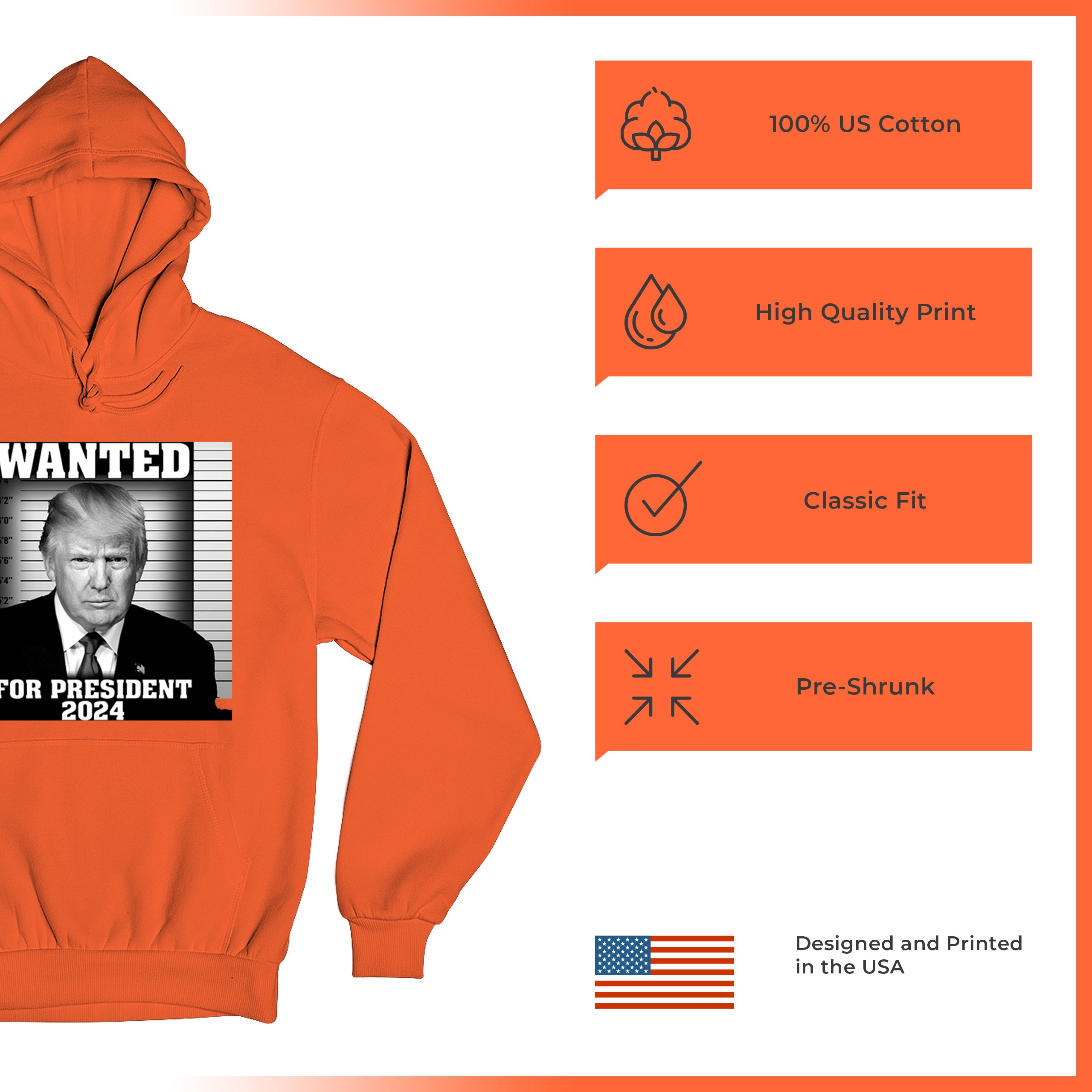 Donald Trump Wanted for President 2024 Sweatshirt Mugshot MAGA America Hoodie