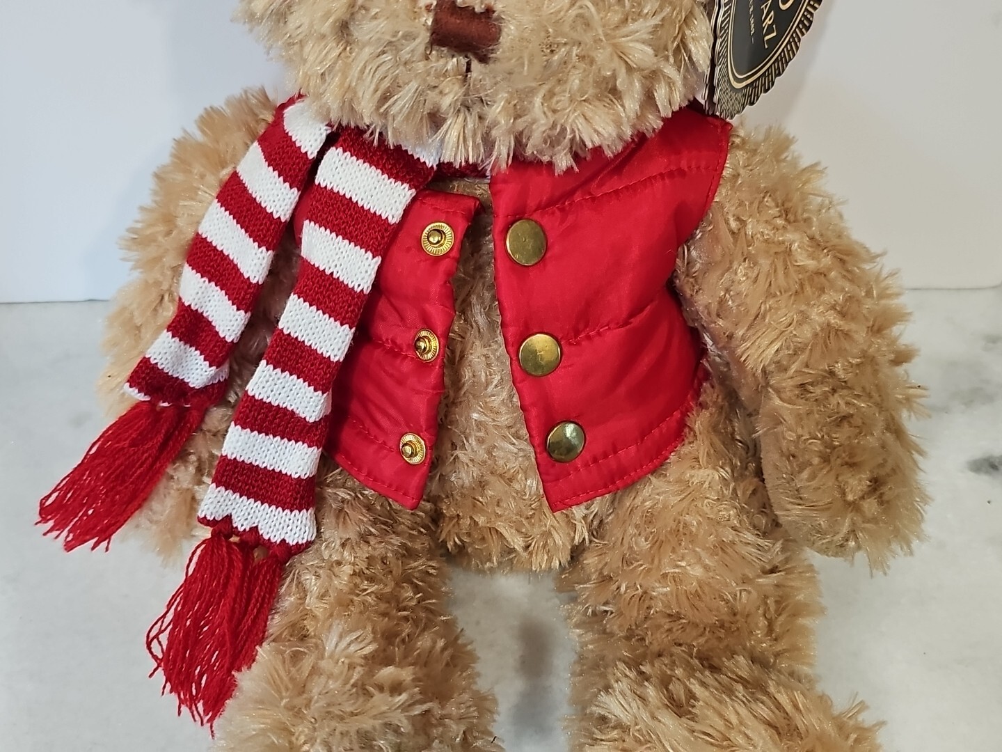 как выглядит FAO Schwarz 2018 Holiday 12" Plush Fuzzy Teddy Bear Red Puffy Vest Scarf NEW NWT фото