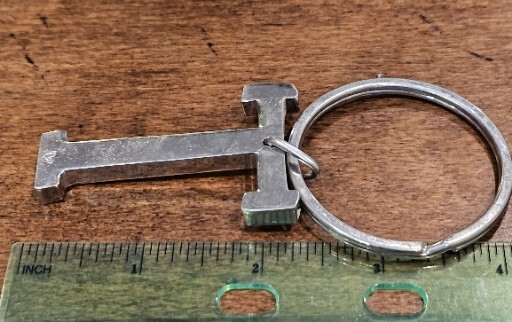 Letter T Keychain Silver Tone Metal Initial Key Ring