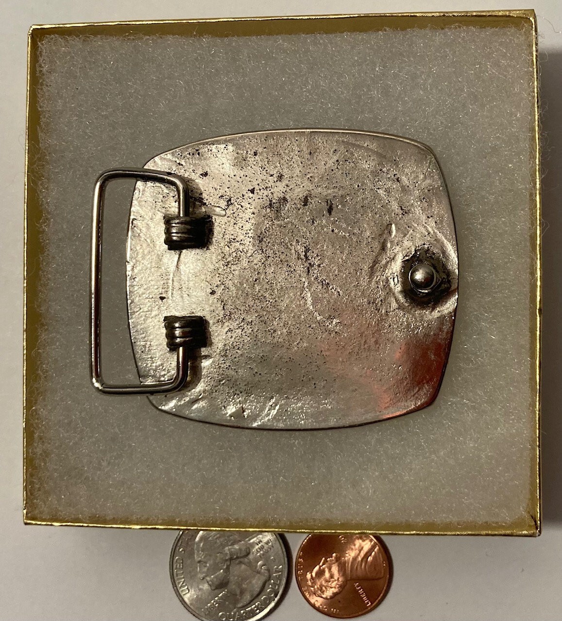Vintage Metal Belt Buckle, Flower, Nice Blue and Green Stones,