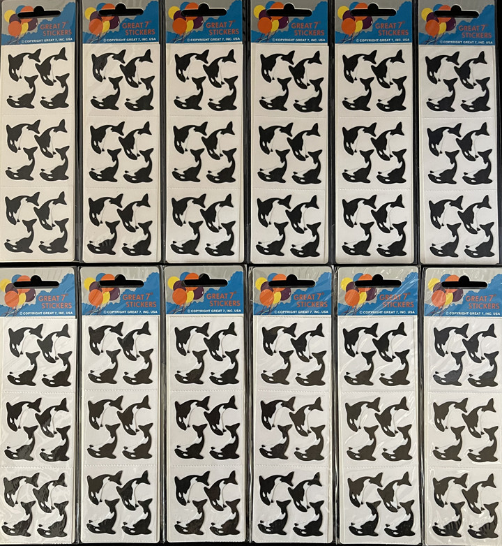 как выглядит 12 packages of Fuzzy Killer Whale Stickers, "Great 7" Sticker Designs, PFZ4034 фото