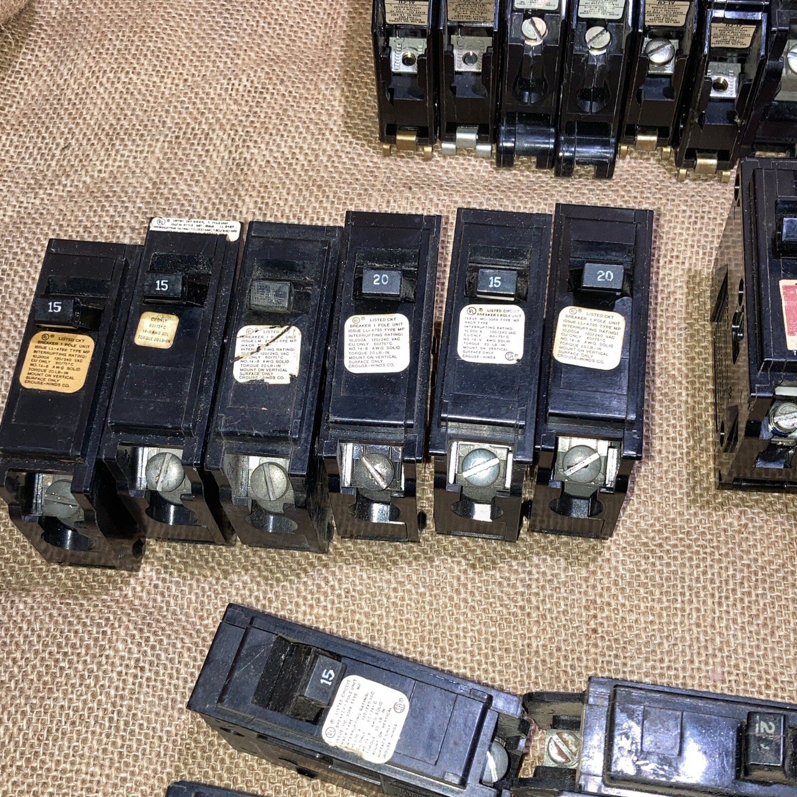 Mixed Circuit Breakers LOT of 32 GE, Bryant, Murray, Crouse, Cutler, Gould