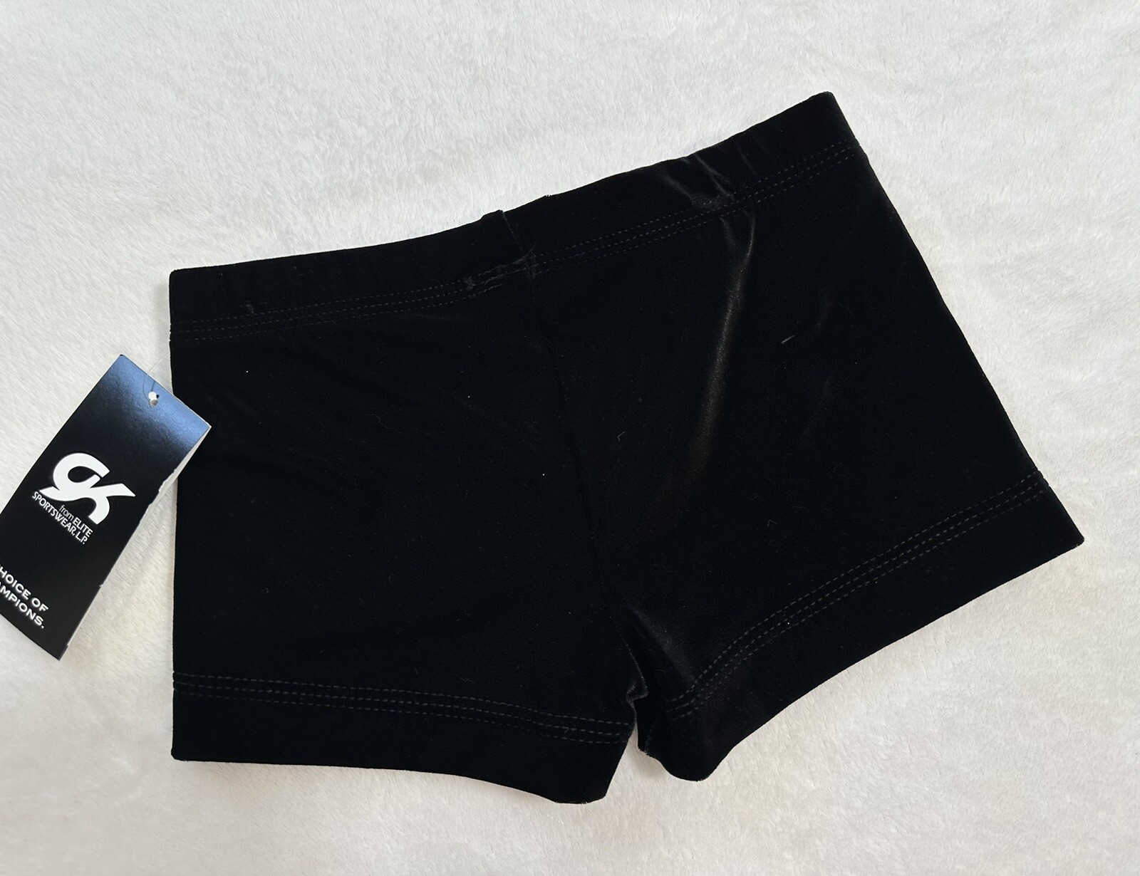 New GK Elite SHORTS Leotard BLACK Velvet Velour Gymnastics MINI Bar CHEER Sz CL