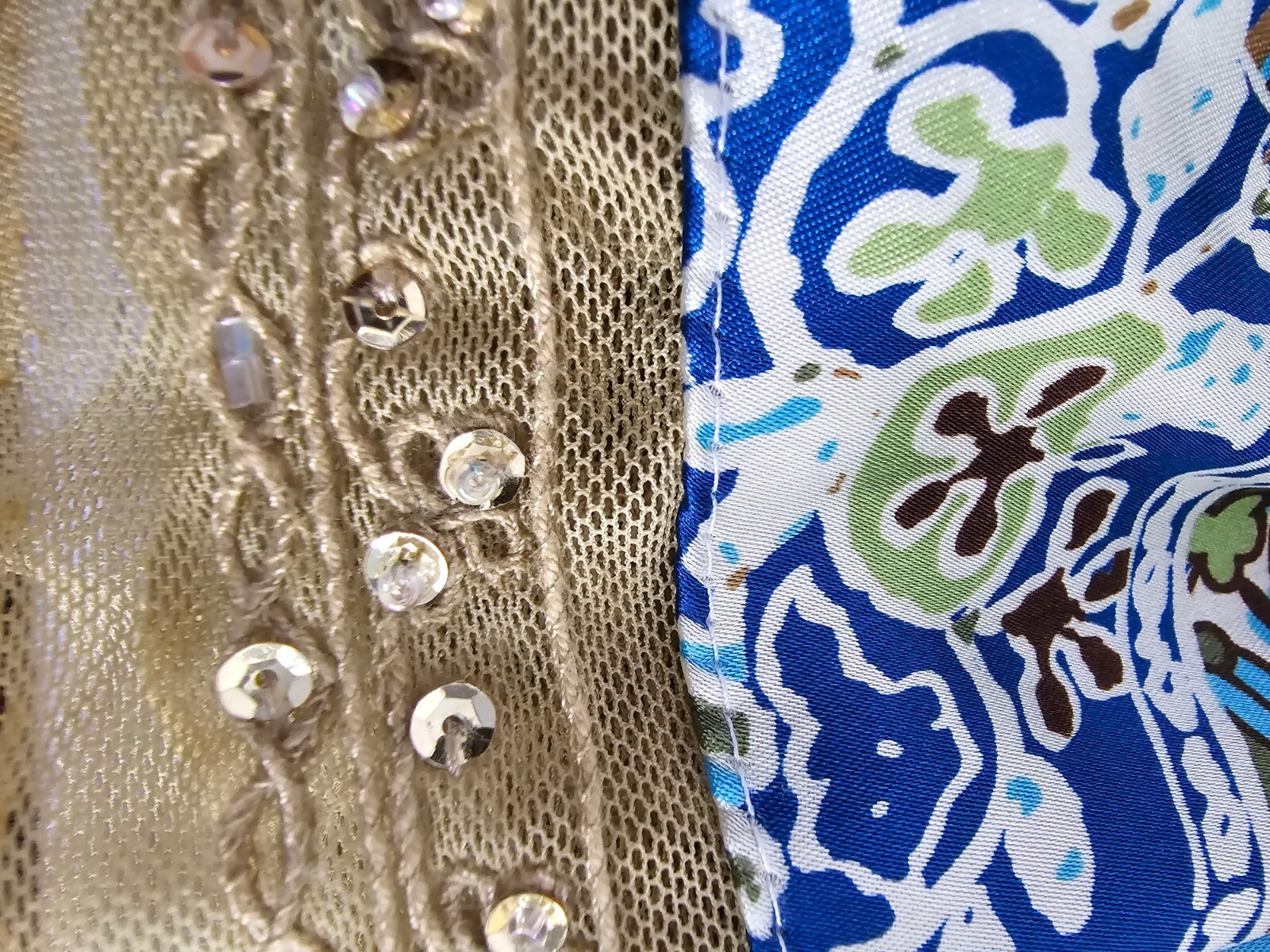 Rampage Women's Blue W/Green Floral W/Lace Trim Sequin Satiny Skirt Sz 7 Zip